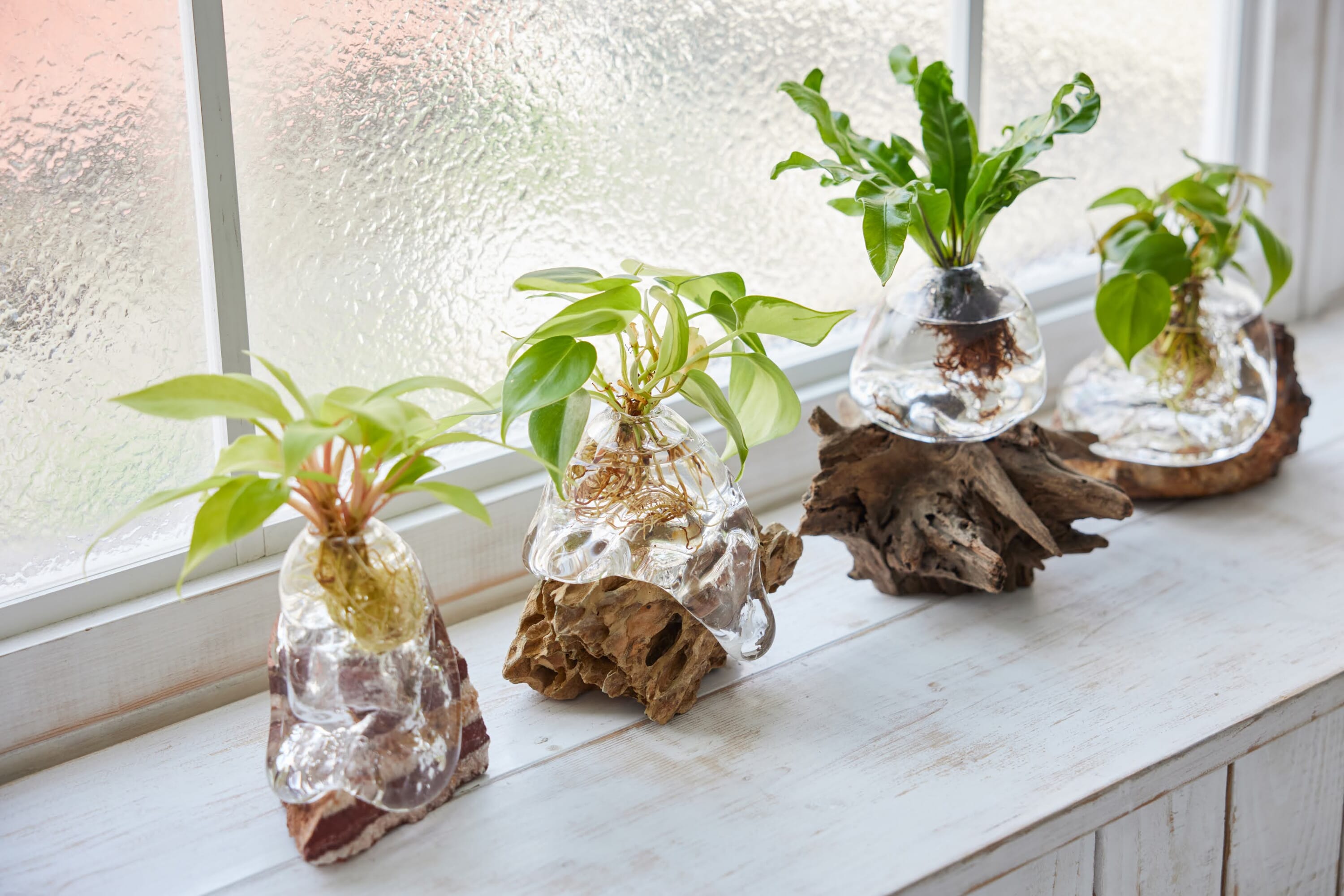 Further challenging the definition of bonsai, Nakajima has lately been doing away with soil altogether to create the water-based “Aqua Bonsai.” This has led to another venture, a plant art studio called Wootang (stylized as WOOTANG) that focuses on plants without soil, whether ornamental foliage, cacti, succulents or air plants.