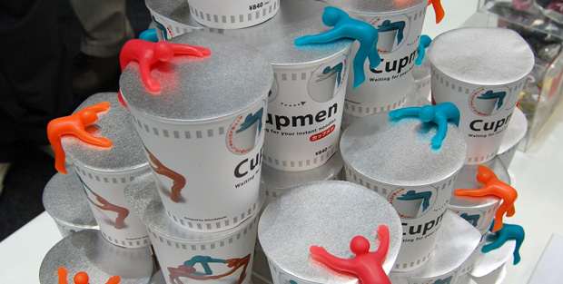 A funny and affordable item was the Cupman (below) available now to buy at shops in Tokyo such as Tokyu Hands, Don Quijote and Beams. The Cupmen lie on top of your instant ramen or cup noodle as you wait for the noodles to cook.
