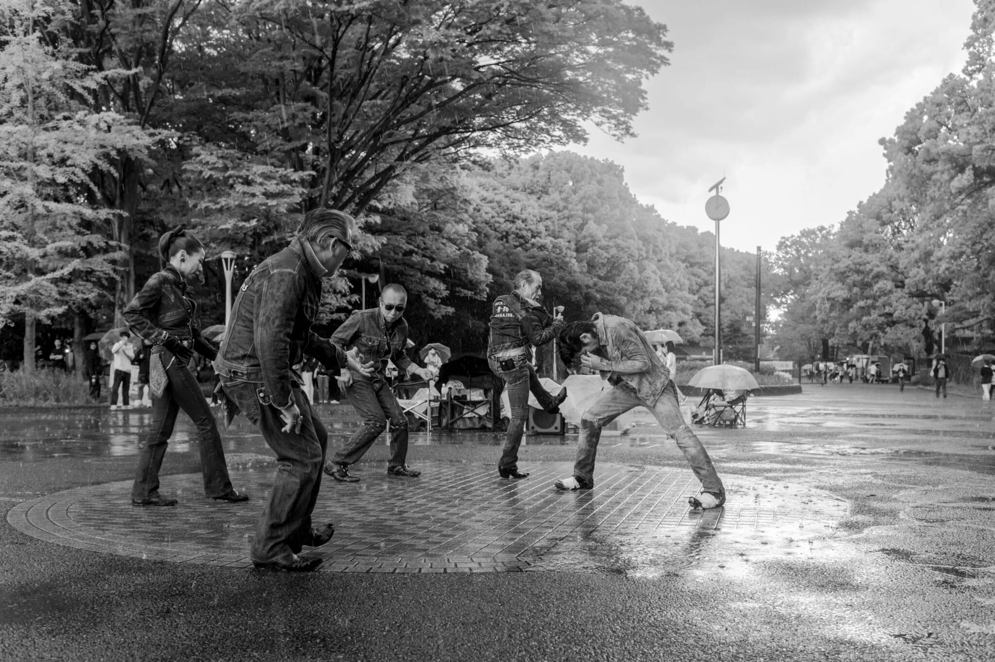 The rockabillies will also tell you that in Japanese, the preferred terms are rock ’n’ roller, roller-zoku (meaning tribe or family) or, simply, roller. Harajuku has long been an epicenter for non-conformity, a safe haven for those who stand out, a power spot where you can find your people. But before there were kawaii Harajuku girls or strawberry cream crepes, there were Tokyo rockabillies with greased hairdos and taped-up shoes. They’re the OGs of Harajuku’s subcultures and are consistently there every Sunday, rain or shine. They even brave hailstorms, dancing while the music player howls under umbrellas.