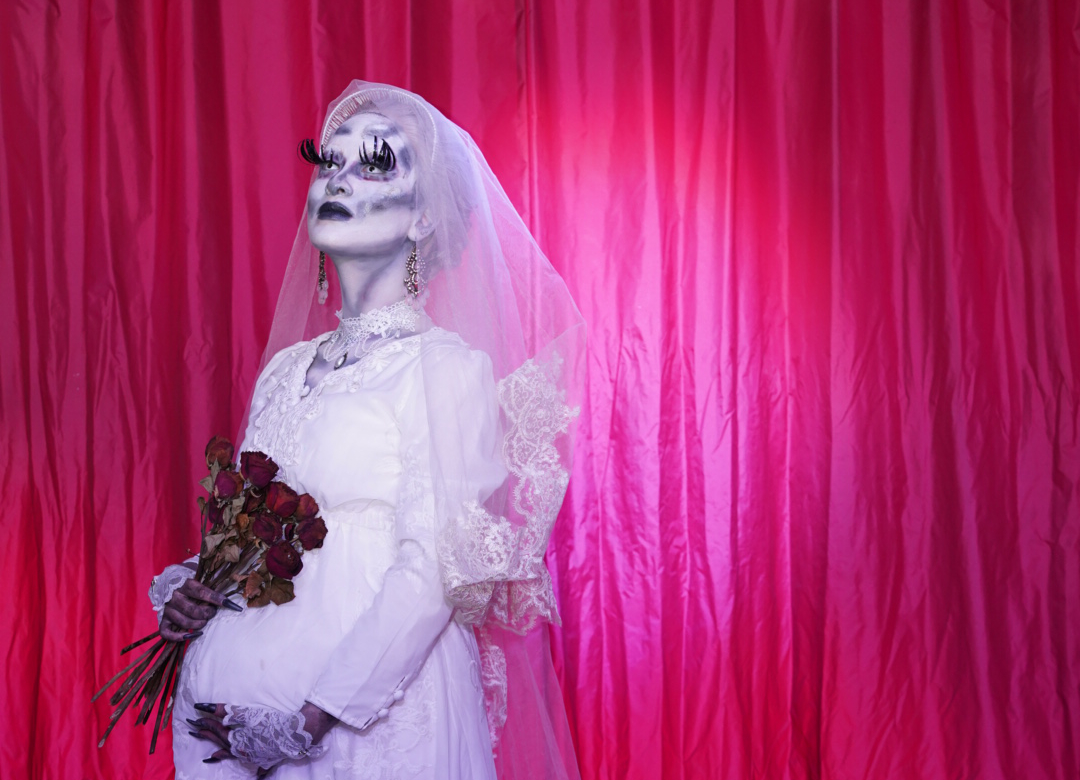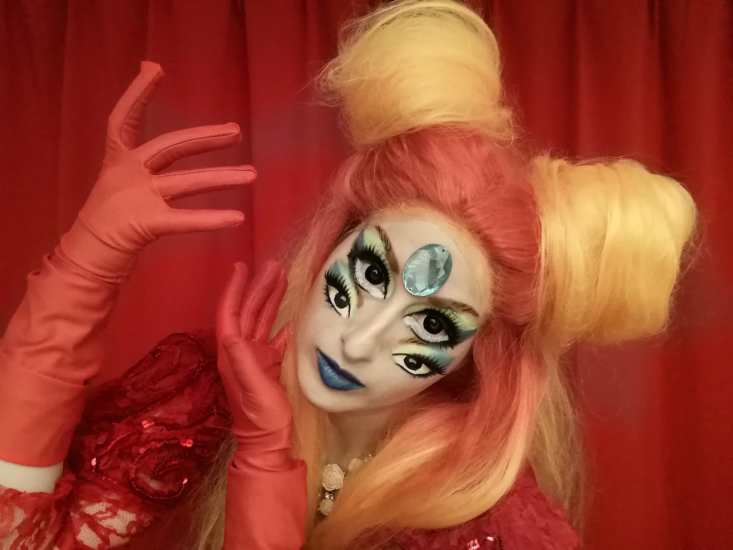 “It was almost drag,” she says. “I just needed eyebrows. Then I started watching Drag Race and blocking and redrawing my eyebrows. That’s when I began to think: ‘I am a drag artist.’ I created my character, Julia Your-Makeup-Is-Terrible, as a way of being the most over-the-top version of myself and also challenging myself to be more. Love, hate, beauty and ugliness, I want to show everything.”