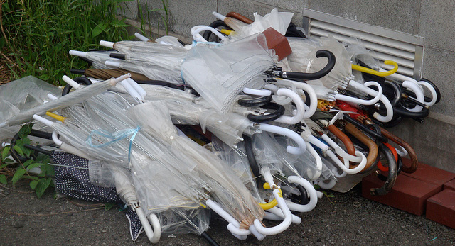 Tokyo during rainy season means seas of clear plastic umbrellas. Millions are sold at convenience stores every year in Japan, perfectly illustrated in Sofia Coppola’s Lost in Translation.