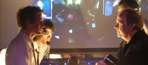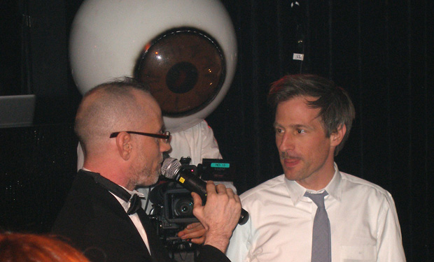 A total of six high-definition cameras were set up in the club to document the event, including this one held by a man in a giant eyeball suit.