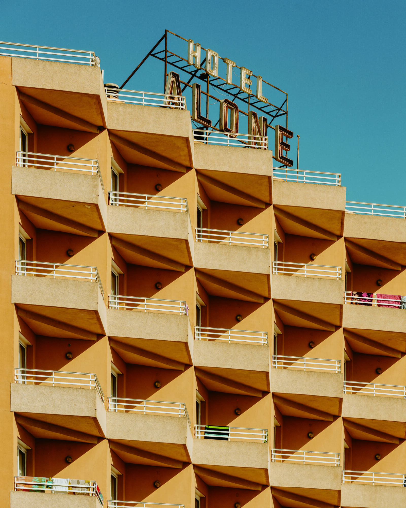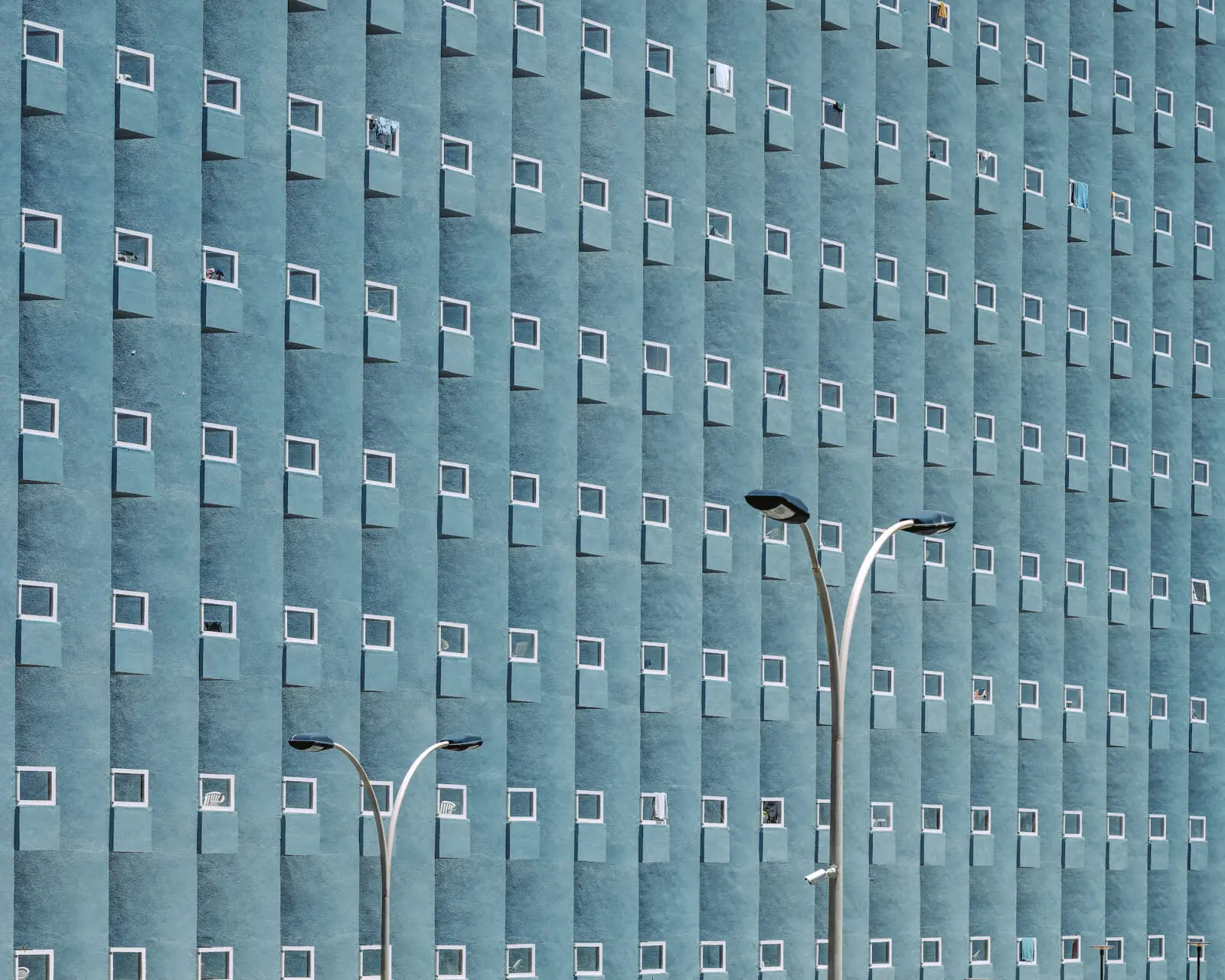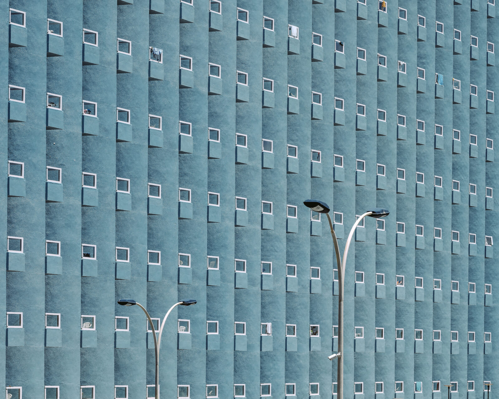 His nonjudgmental observation is apparent; his images are vibrant and bold, but there’s an element of watchfulness underlying the colorful visuals. When he captures humans in his photos, the subjects are unposed and unaware of the camera, and his architectural works show perfect rows of apartments with sporadic signs of life, like laundry drying in the sun.