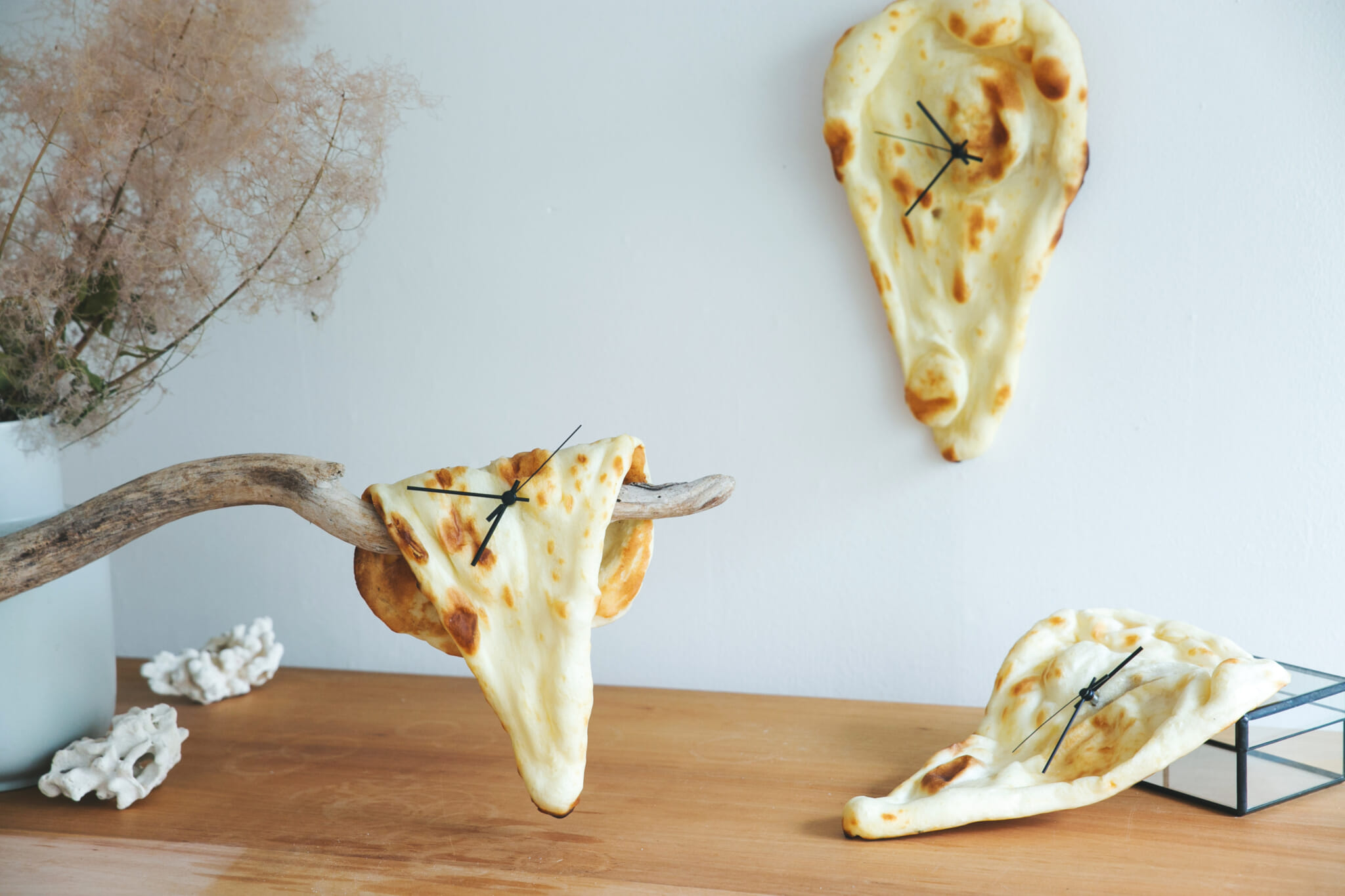 Pampshade’s lineup includes its best-selling croissant and bread roll lamps, as well as the Naaaan Time melting clock, inspired by Salvador Dalí’s “The Persistence of Memory.” Morita hopes to work with other bread types in the future, naming pretzels, bagels and canelés as dream projects. “Actually, we’ve experimented with these before,” she says. “But due to various problems with the preservation and shape, we didn’t feel comfortable presenting them.”