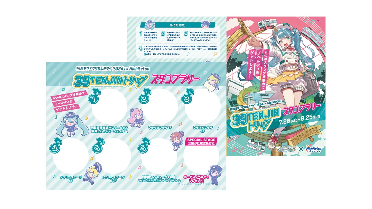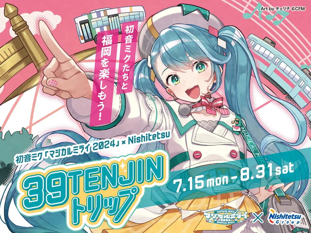 Nishitetsu Group’s Tenjin Omuta Line is collaborating with Hatsune Miku and her fellow Vocaloid friends. The campaign, titled “39 Tenjin Trip,” has exclusive tickets, new train and bus designs, merchandise, hotel rooms and a stamp rally.
