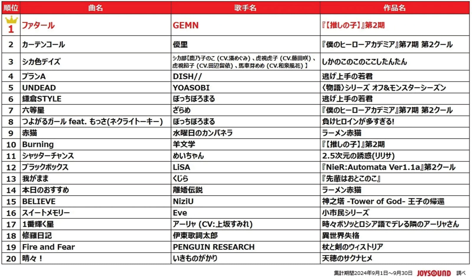You can find out more about the Joysound 2024 Summer Anime Theme Song Karaoke Ranking here.