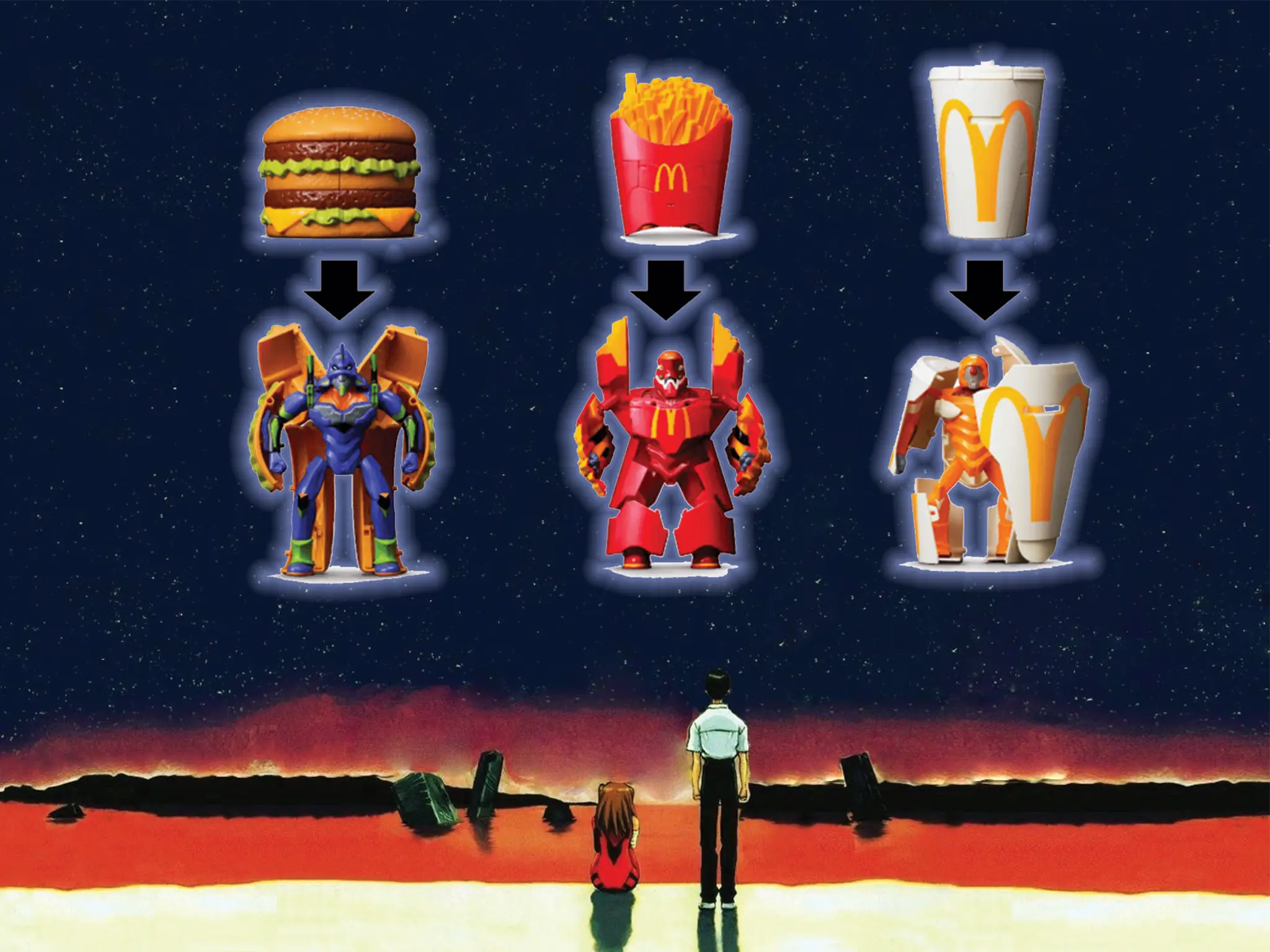 Calling all Neon Genesis Evangelion fans! McDonald’s Japan has announced a limited-edition collaboration featuring transforming mecha toys that go from McDonalds’s staples to giant robots. Find out how to get your hands on these epic collectibles.