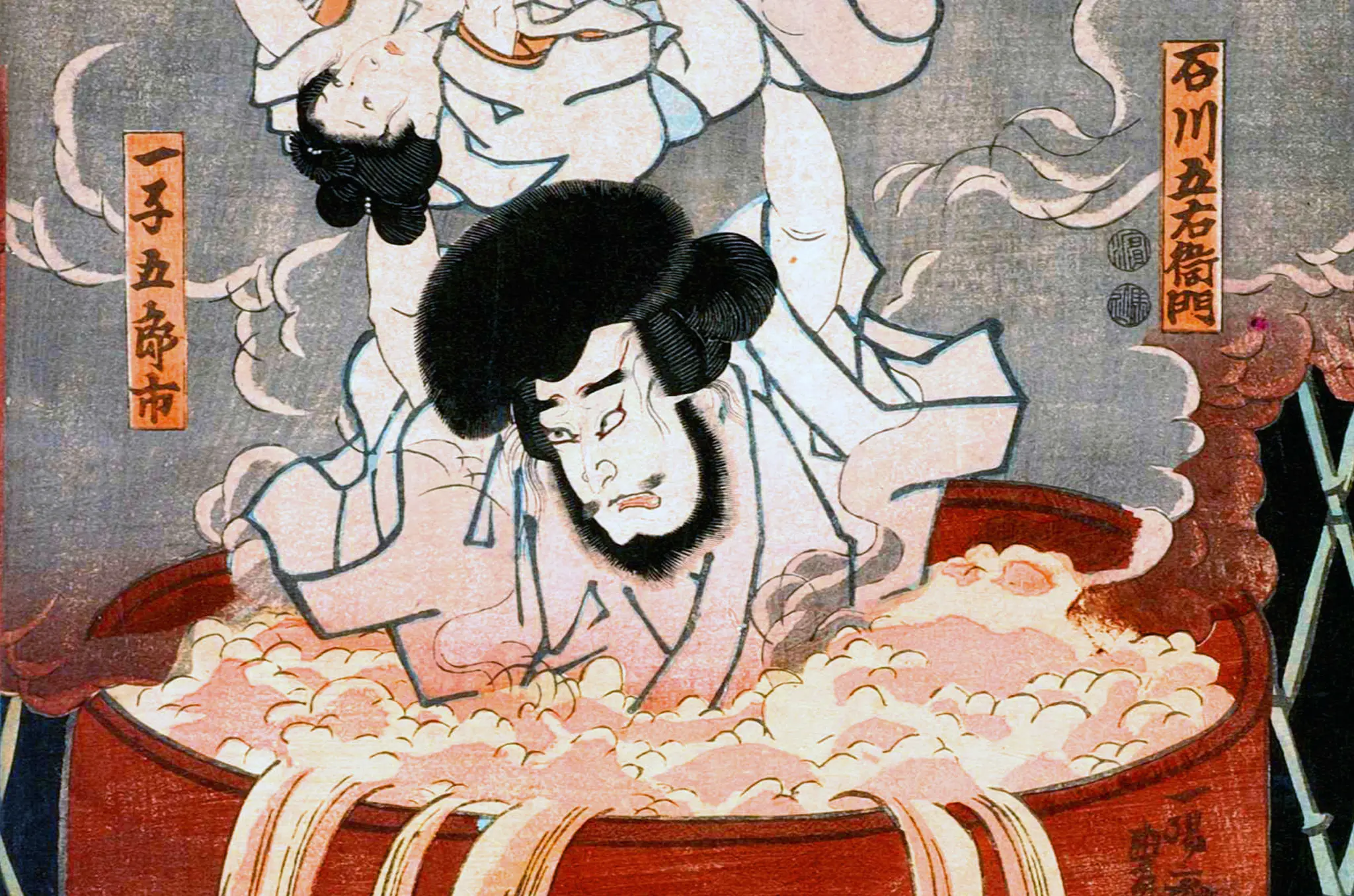 The most interesting reference in the Wano arc, though, involved a character called Kozuki Oden, who was sentenced to death together with his retainers by being boiled alive. To spare his vassals, he held them above him on a large platform, enduring the pain all by himself. This brutal scene was clearly inspired by the tale of Ishikawa Goemon, a semi-legendary thief who was sentenced to being boiled alive together with his son, whom he held above his head as long as he could.