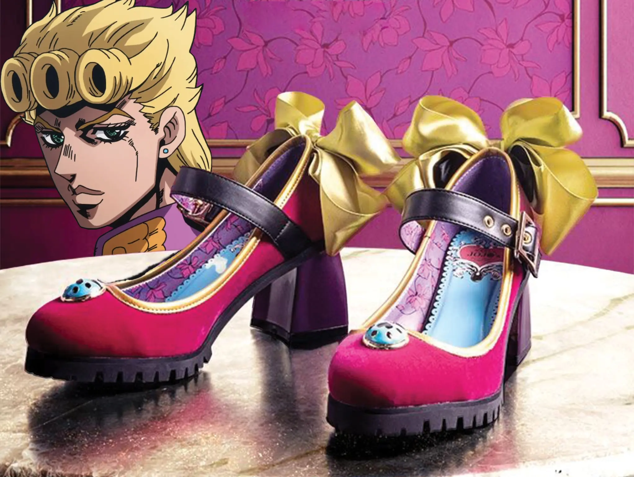 The shoes are specifically inspired by characters from JoJo’s Bizarre Adventure: Golden Wind, which is the 5th part in the overarching JoJo’s series. There are seven pumps in total which each represent a character from the show. The shoes themselves are specifically designed so you can feel the aura of each character’s presence throughout your feet. Two variations are available, one with a bow for the ultimate statement piece and one without the bow for a slightly more subtle look.