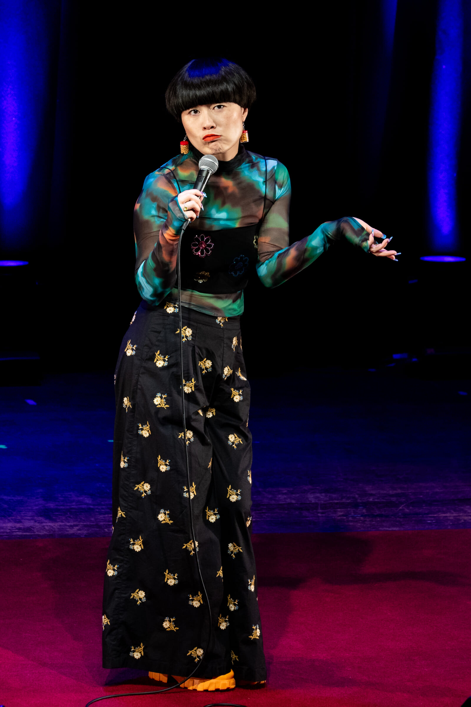 Okatsuka, who is Taiwanese-Japanese and currently based in Los Angeles, is in Tokyo to perform eight sold-out shows as part of her international Full Grown Tour. It’s been a whirlwind few years for her: She’s been interviewed by the likes of Stephen Colbert on The Late Show and Chelsea Handler on Jimmy Kimmel Live!; she was named one of Variety‘s Top 10 Comics to Watch in 2022; the same year, she became the second Asian American woman to have a comedy special on HBO with “The Intruder,” which was also named the best debut comedy show of the year by The New York Times.