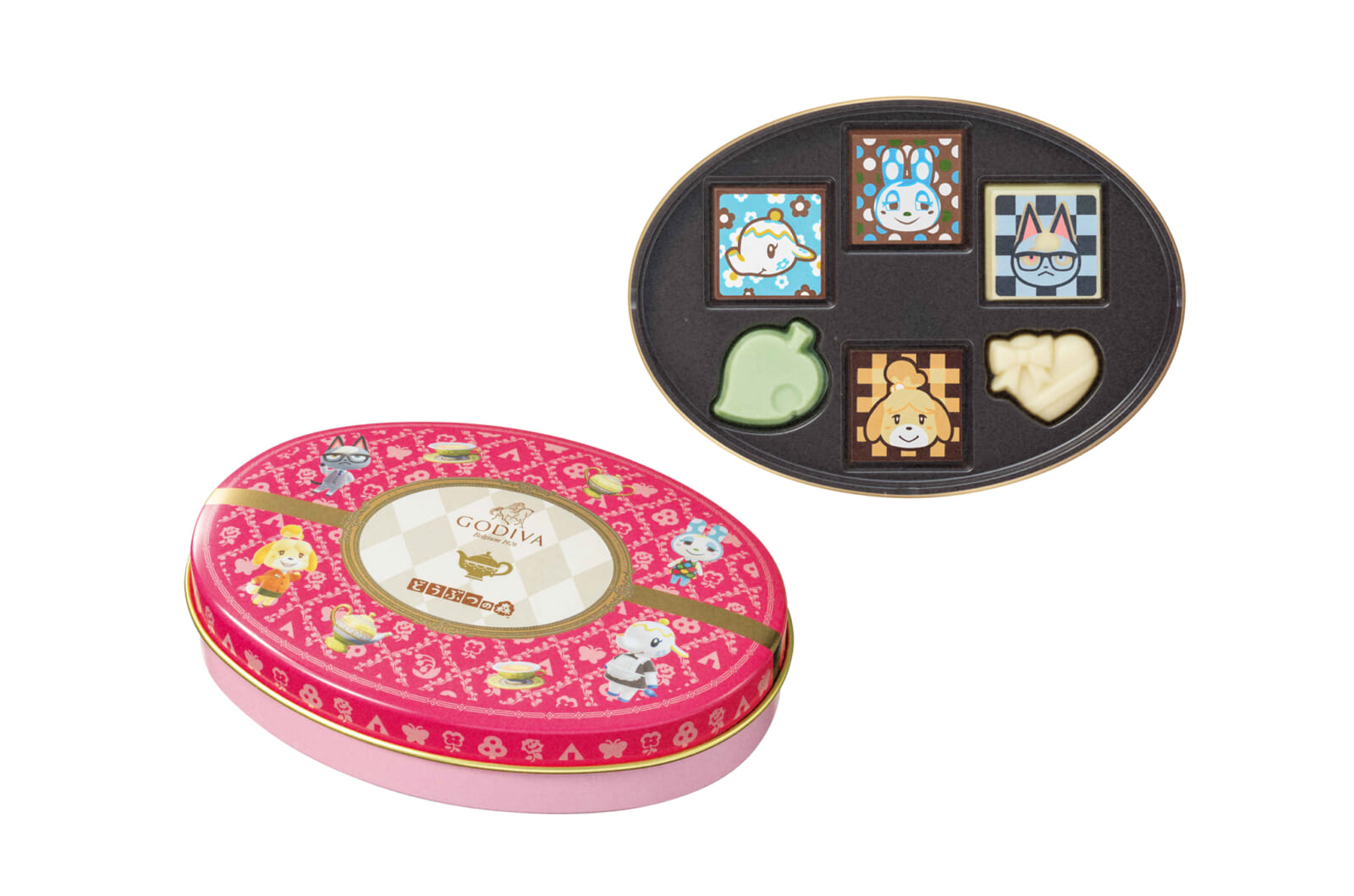 Each chocolate is a tiny crossover moment between cute island game life and Godiva indulgence.