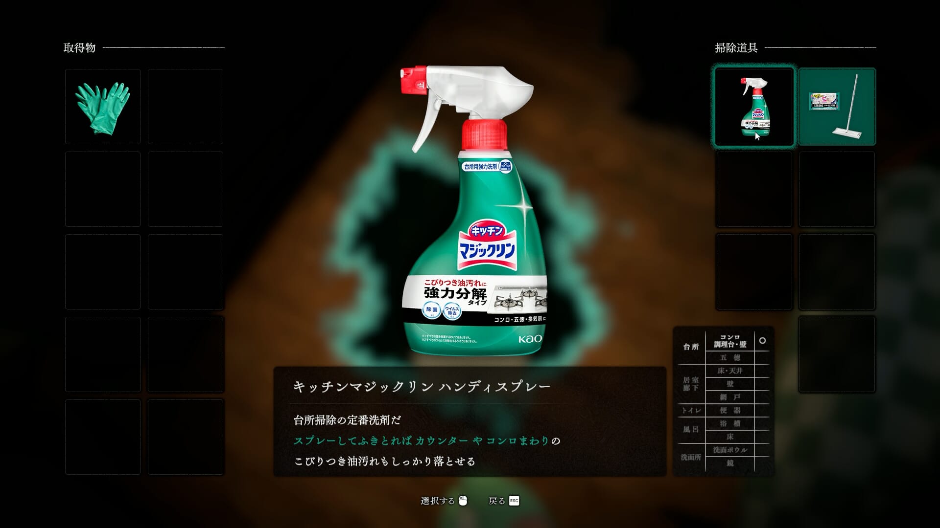 Inspired by many of the great survival horror titles that came before it, such as Resident Evil and Silent Hill, players can then combine and modify the products they find in order to handle particular situations. Got a stain on the screen door in the hallway? With the Kao strong wet wipes attached to your adjustable Kao Quickle mop, just shorten the handle for use in tight spaces. It’s so easy!