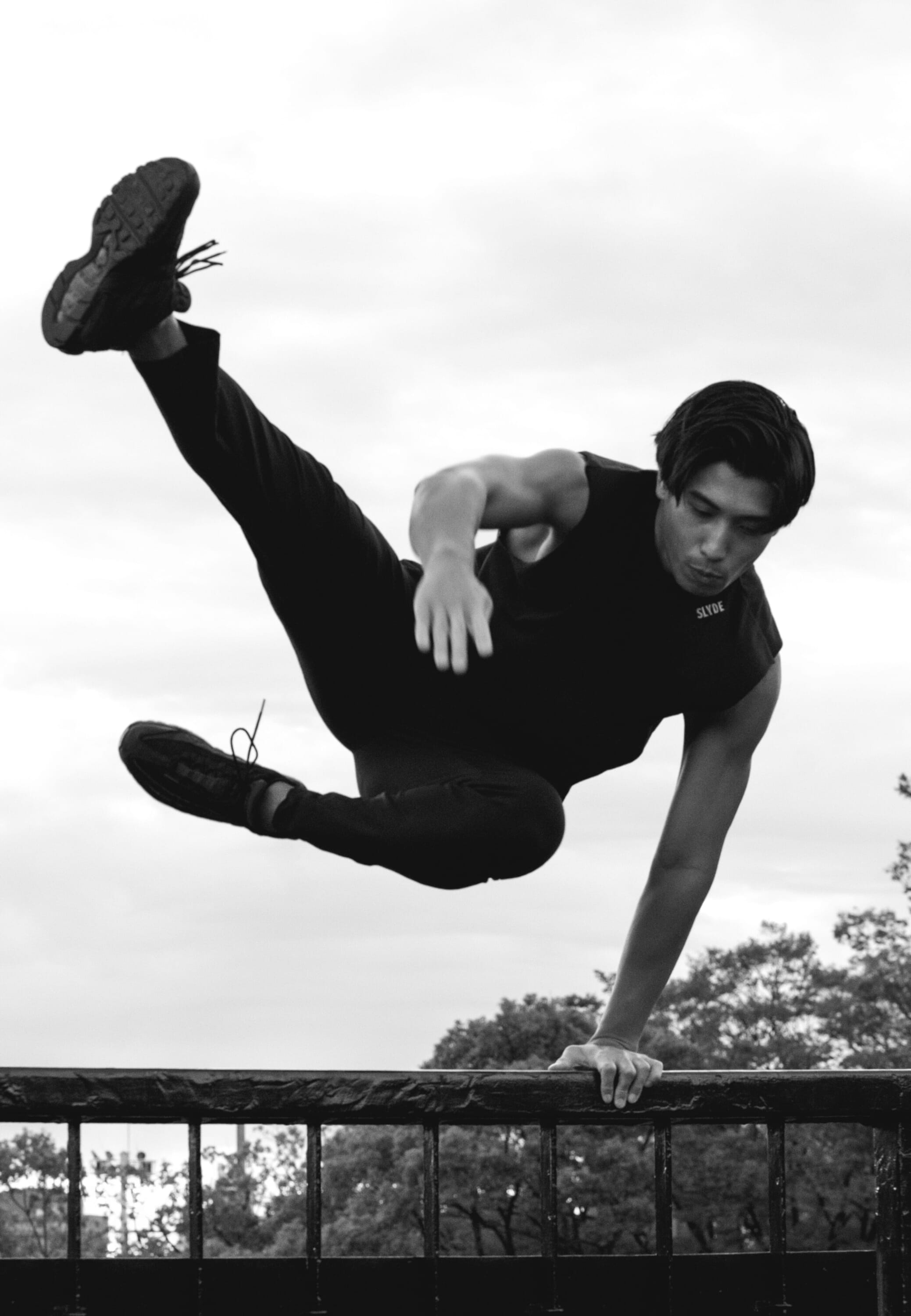 Parkour has been a well-known sport for a few decades now. Originating in France in the 1990s, it is defined as moving from point A to point B in the fastest and most efficient way possible. This can include scaling the side of objects and buildings, jumping, vaulting, rolling and flipping to reach your destination.