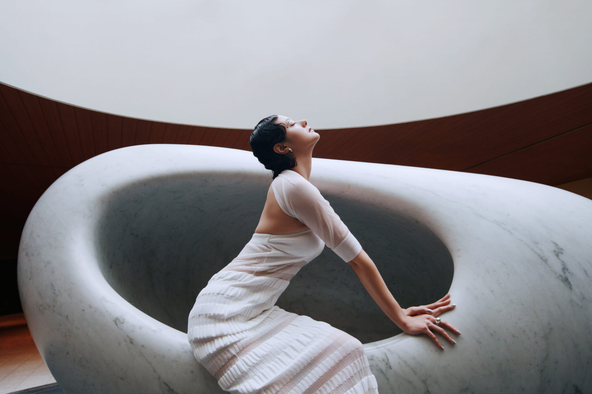 I often go on my days off, and I’m surprised and disappointed I didn’t properly notice the public artworks until now. Being there for the shoot, I was able to see a different side of Midtown and a different side of myself. I went inside the large white sculpture (Kan Yasuda’s “Ishinki”) for the first photograph, and that’s something I’ll remember every time I pass it. I have many good memories of the complex, including seeing musicians like Alicia Keys and Crystal Kay at Billboard Live Tokyo. It’s also a great place to eat, especially the casual food court on the basement floor and the Indian restaurant Nirvana.