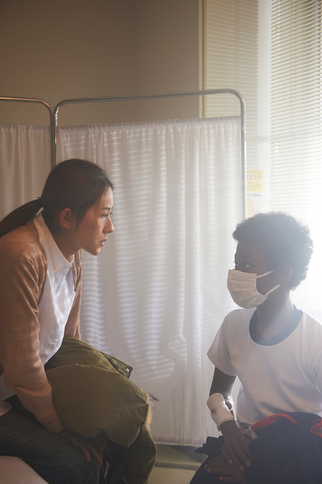 When Dadie auditioned, Osei-Kuffour says he was, compared to other kids, “by far the most natural, and he seemed to resonate with the character [Keisuke] … I didn’t know if he’d gone through bullying, but his performances had an underlined pain. He was a very confident kid, but you could sense that he had experienced some of the events in the film.” On screen, when a Japanese student says that Keisuke has HIV/AIDS, Keisuke quickly turns to him, “AIDS? I bet you’re the one that has it.” It’s a subtle but poignant scene showing the remedy’s tolerance to the problem. Kids like Keisuke deal with this daily.