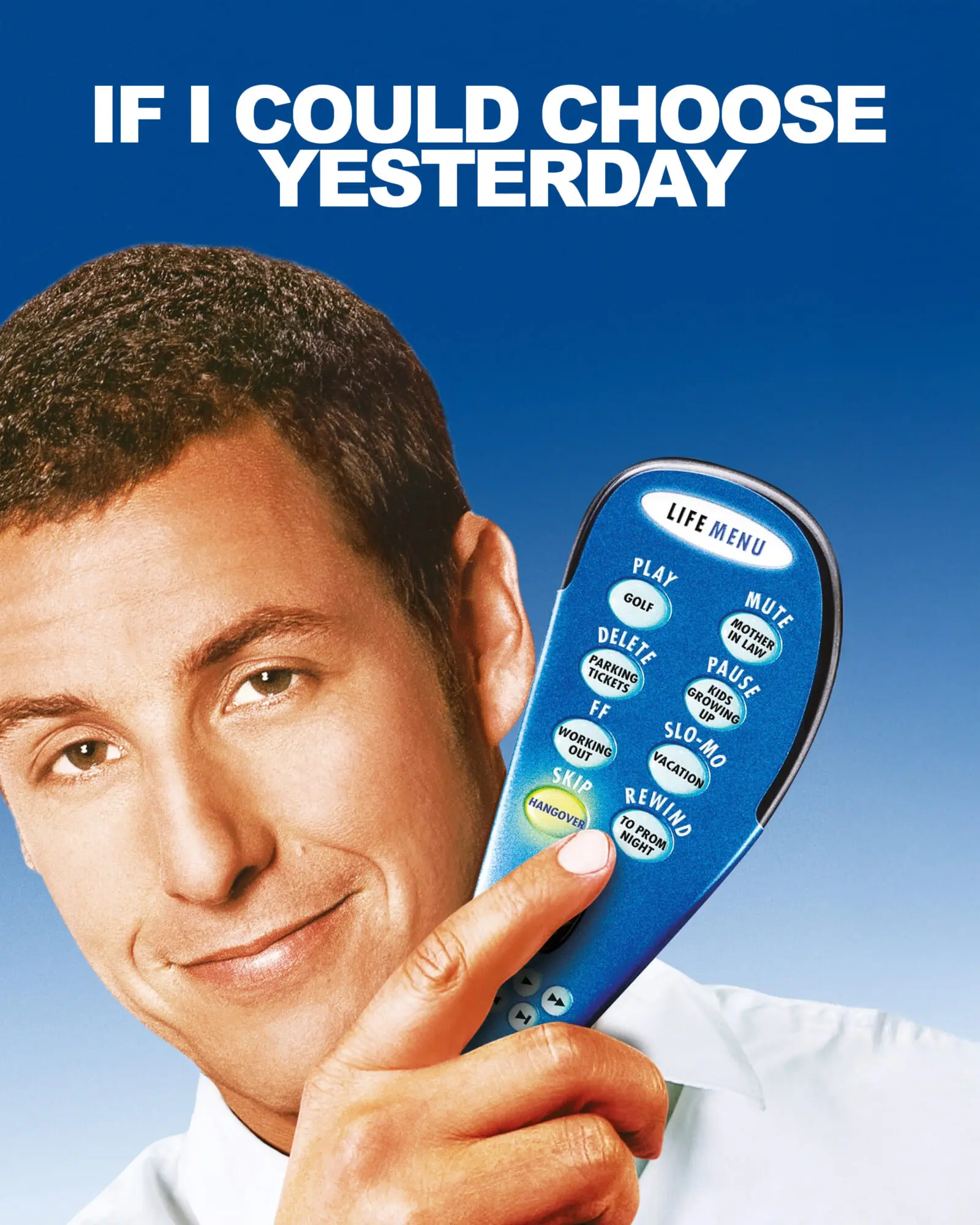 A 2006 comedy-drama produced by and starring Adam Sandler, Click follows Michael Newman, who gets a remote control that controls the universe. Michael uses it to fast-forward through the seemingly mundane parts of life, but in doing so, he unintentionally skips over important moments with his family.
