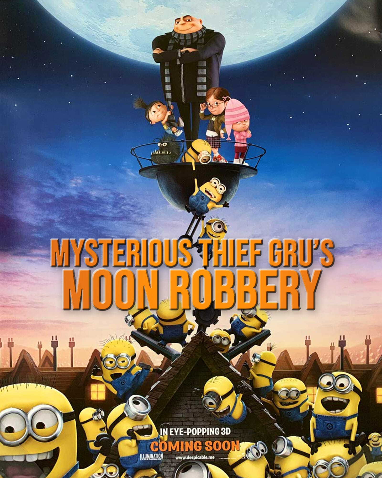 The first installment of the Despicable Me franchise was titled Kaito Gru no Tsuki Dorobo —Mysterious Thief Gru’s Moon Robbery. The Japanese title shows Gru’s plan to steal the moon as a grand demonstration of his villainy, highlighting the fun action and comic shenanigans that are in store.