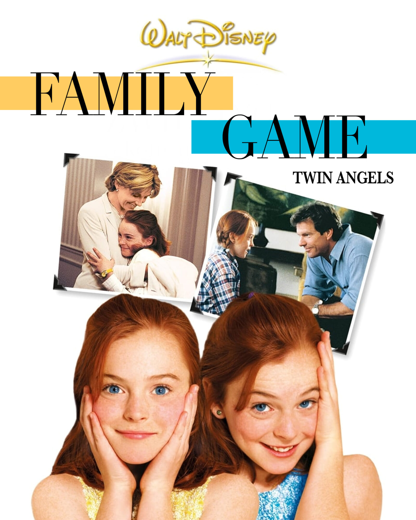 Keeping “parent trap” in the title may have accidentally brought more of a feeling of literal danger and captivity. So, The Parent Trap became Family Game: Futago no Tenshi — Family Game: Twin Angels.