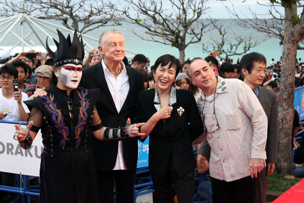 The red carpet was rolled out with a beautiful Okinawan beach as its backdrop, along with the Cine Screen 400, the world’s largest mobile screen, imported specially from Locarno, in Switzerland. Clear skies and a blistering sun were on hand to mark the occasion. There was a wonderful atmosphere around the site which mounted throughout the day as fans gathered to see a host of Japanese comedians, pop stars, models and filmmakers walk the carpet.