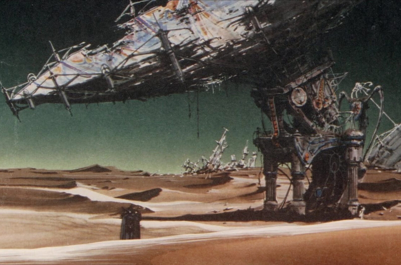 The mesmerizing “sky cemetery” shot tells us that the people of this world live in constant fear of vampires. And the following scene where a passing vampire carriage warps the crosses into useless heaps of metal tells us that we are dealing with an immensely powerful antagonist. No words, just visuals that the audience is left to ponder on their own. The movie is full of moments like that. Though the world of Bloodlust looks vaguely Victorian with people (or vampires) moving around in carriages, those are being pulled by cyborg horses across abandoned highways, past crashed spaceships and crumbling satellite installations.