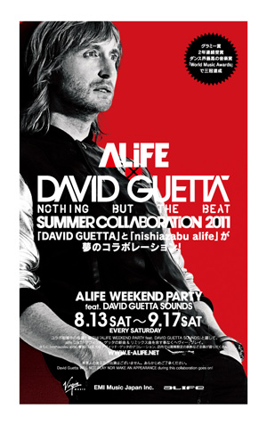 ALIFE are celebrating the release of superstar DJ David Guetta’s new album with a party weekend, EVERY weekend until September 17! The Nishi Azabu club has transformed the exterior of the club into a bright red Guetta billboard. If you’re a fan of party music, you should make ALIFE top of your list—but unfortunately for hardcore fans, David will not be attending (nice promotion idea guys!).