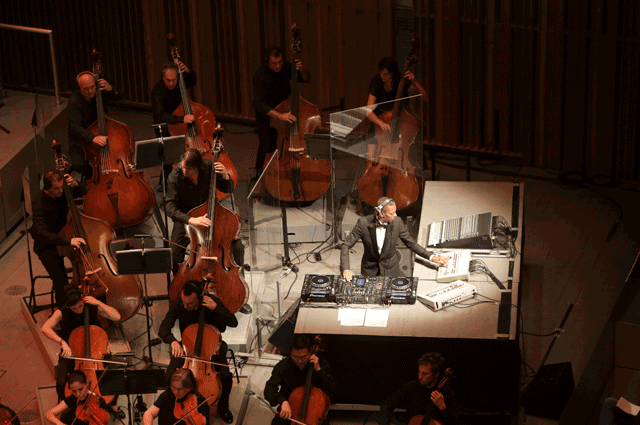 Well, another things stems from the fact that I wrote the music. So when you hear the cello play a line, it’s what I wrote. And that’s so different from playing as a DJ for an audience. When I’m up there with the orchestra, I’m really inside the music, surrounded by musicians, and I can hear the double bass play his part right next to me; the cello too.