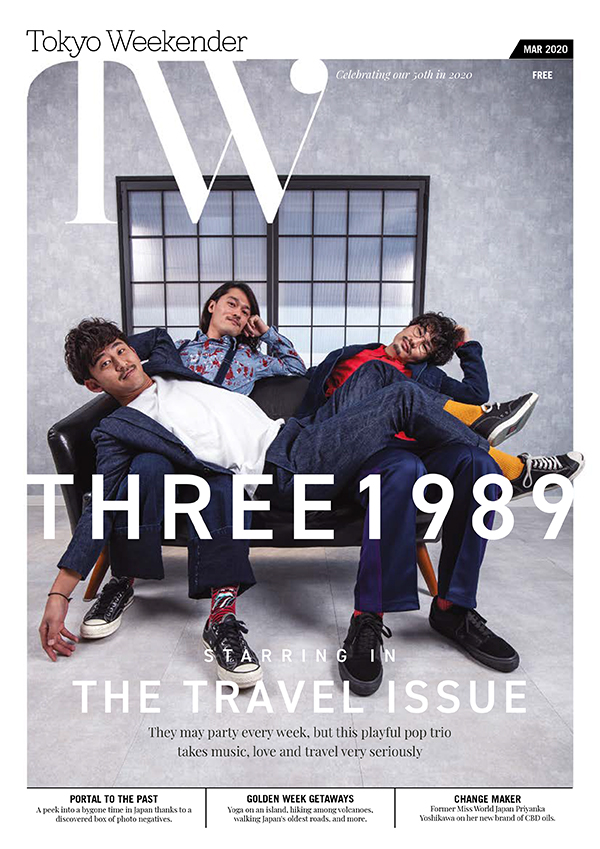 The Latin expression “omne trium perfectum” states that everything that comes in threes is perfect, or is at least, a complete set. Charlie had three angels, d’Artagnan had three musketeers and now, Japan has Three1989. Often shortened to Three, the ’80s soul pop trio skyrocketed to worldwide fame in part thanks to vocalist Shohey Uemura’s appearance on Netflix’s 2018-2019 season of Terrace House Opening New Doors set in Karuizawa. TW met with Shohey Uemura (vocals), Yutaka “Shimo” Shimomura (keyboard) and Hideaki “Datch” Adachi (DJ) on a sunny morning in Shibuya for some candid talk about love, life and solo travel gone wrong.