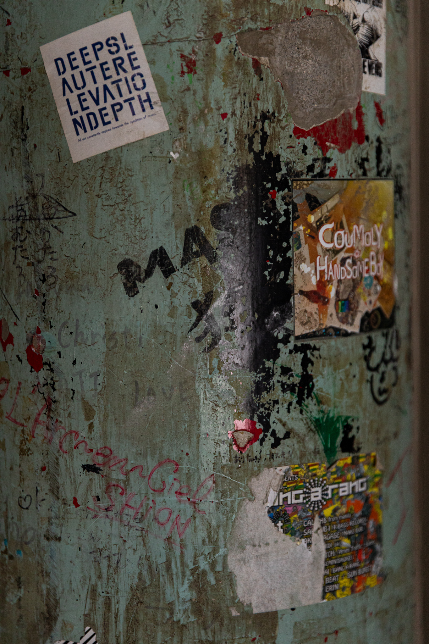 In the midst of this bustling activity and freshly painted walls, one pillar stands out: It’s covered in torn band stickers and graffiti. Much like the senjafuda votive slips pilgrims plaster on temple and shrine ceilings as proof of their piety, these remnants tell a story of those who came before. The pillar serves as a poignant reminder of the legendary concert hall and nightclub Namba Rockets, which used to occupy this spot until its sudden closure in February 2016.