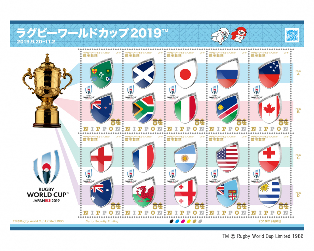 (Note: All information and names of team members in the Japan national rugby team as listed on the stamps were up to date at the time of production.)