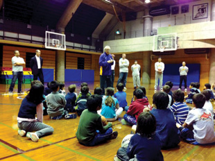 “The Apache organization has a great commitment to the children of Tokyo,” says Ryan Goldstein, the Nishimachi International School Father’s Group Coordinator. Goldstein, who is an attorney with Quinn Emanuel in Tokyo, has taken on the role of helping the team with family relations, organizing school events and coordinating meet-and-greets with the team. “When you see a guy who is over 2 meters tall, lifting up a child to dunk the ball, you know you have a great group of guys.”