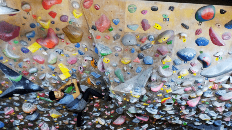 The walls are more of a tricky design rather than a frightful height, and so you are not really too far up off the ground. The floors are covered with safety mats so falling is painless. Bouldering is more about navigating the climb rather than getting tied up in the equipment.