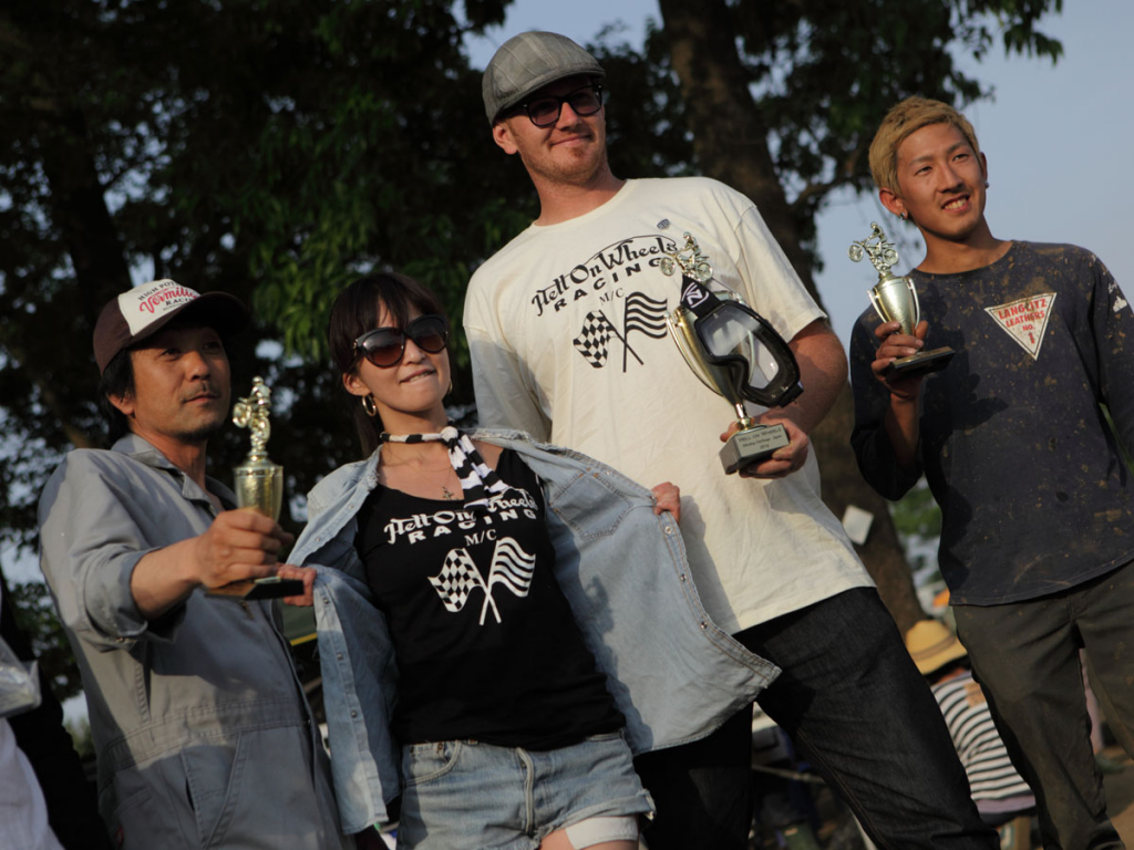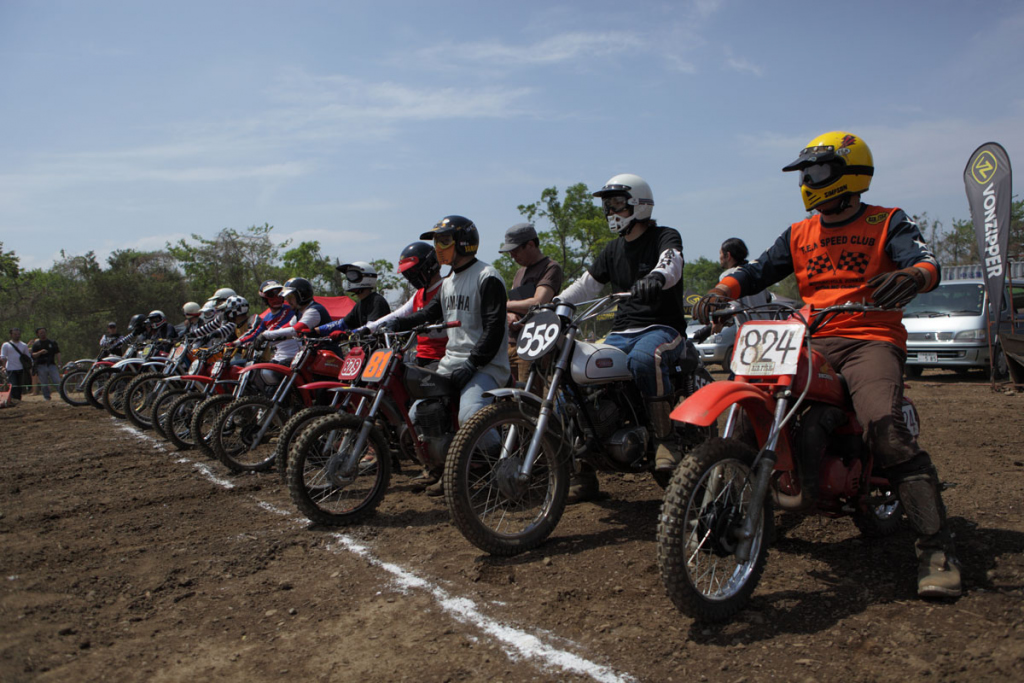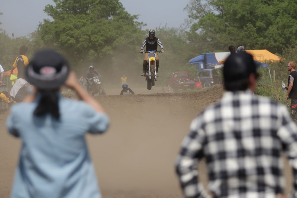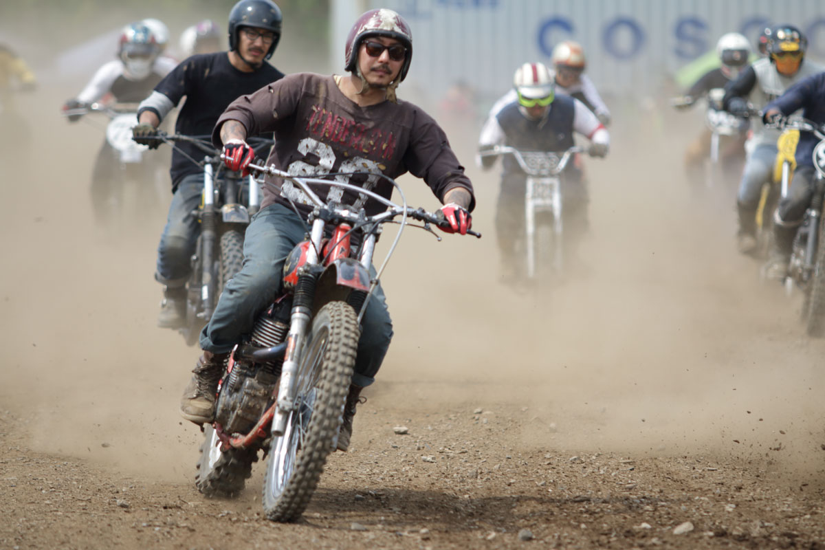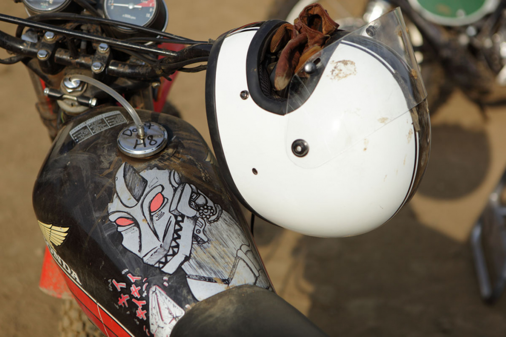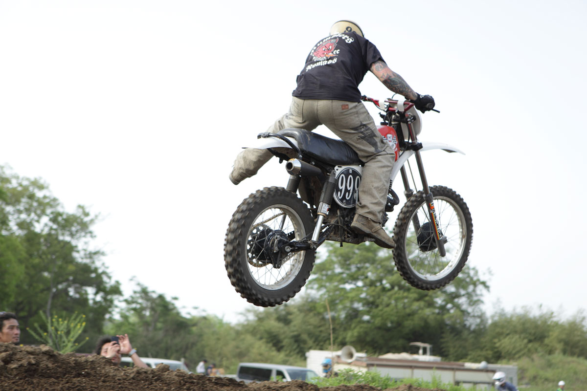 Earlier in the year this group of motorcyclists spent a full day packing 40 vintage motorcycles into a shipping container in California. Their purpose: a single day of racing at an out-of-the-way motocross track in Saitama. Organizer Jeff Tulinius, who usually goes by the name “Meatball,” describes the Hell On Wheels crew and affiliates as “a vintage motorcycle repair shop in California—just a couple of guys wrenching on old bikes. We get out and race as often as we can. No real clubs as such came with us, but the guys and gals from Von Zipper, Deus, BA Moto, Lossa Engineering and a few others came along.”