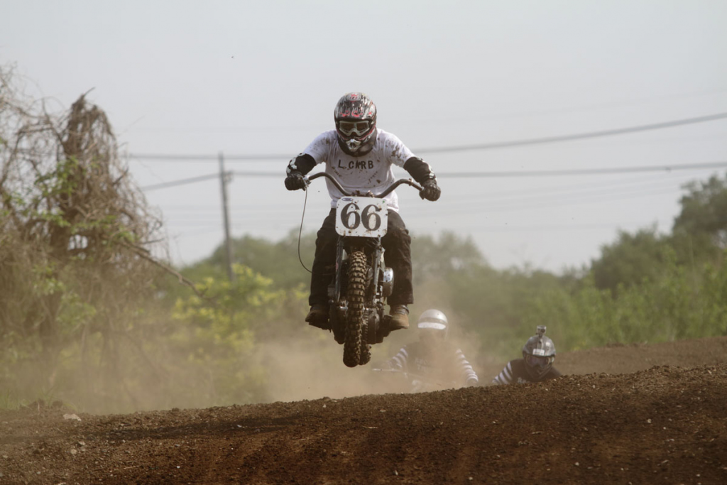The Clash boomed from PA speakers, and the races kicked off in a massive cloud of fine dust. The roar from raucous two-stroke engines echoed from the surrounding forest. Bikes abandoned at the starting gate were common, while bikes with engines wrung past their limits similarly peppered the track, stalled or sometimes just plain dead. A struggle for survival had begun, riders intent on making each lap faster, taking each jump longer, and pushing their bikes’ finite capabilities against the unrelenting track.