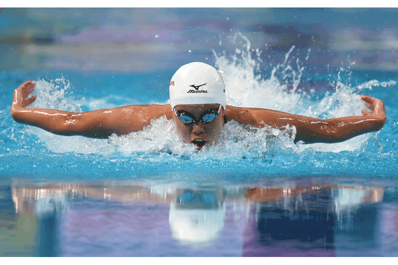 Inspired by the Australian, Hoshi’s times improved. She won two inter-prefectural high school championships, but something wasn’t right. Increasingly fatigued, she found training was becoming more difficult. “I went to see the doctor and he informed me that I had Graves’ disease,” she tells us. “I thought I’d have to quit swimming. I was often out of breath and couldn’t do any intense training. The medication I was on wasn’t making much of a difference and I could only do light exercise like walking in the pool.”