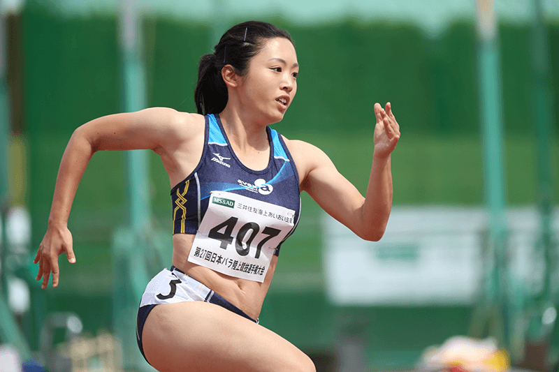 The Saitama Prefecture native started out with a prosthetic used for daily life, but later switched to a J-shaped one preferred by athletes at the Paralympics. It proved tough early on from both a physical and psychological perspective, however, when she got used to the artificial limb her times improved rapidly. She trained every day at an athletics club with able-bodied runners, and in her second grade at high school she was selected for an Asian Para Youth event in Tokyo. At the age of 20, she qualified for her first Paralympics, representing Japan at the 2012 London Games in the 100m and 200m sprints as well as the long jump (all T44 classifications).
