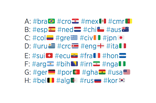 A picture may be worth a thousand words, but type in a hashtag and a three-letter country code and you can get an image of the flag of one of the nations playing in the World Cup. One note, though: you can only see the flags on Twitter: they won’t show up on websites or some applications.
