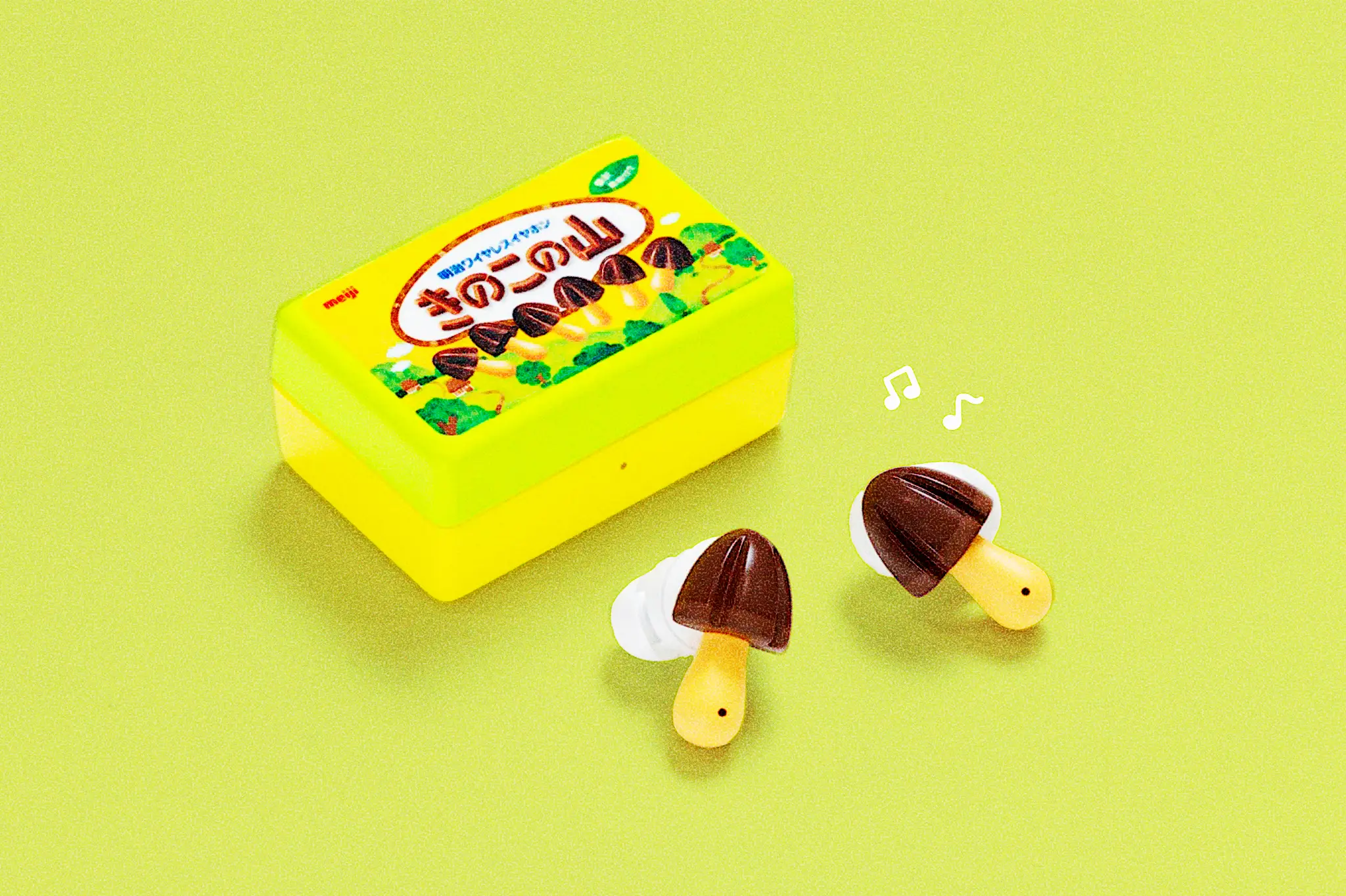Have you ever window-shopped in Japan and discovered so many things that you never thought you needed in life until that exact moment? That’s how we felt when we first laid eyes on the official Meiji “Kinoko no Yama” wireless earphones. Yes we checked, but April Fool’s Day is not for a few more days so this is very much a real campaign.