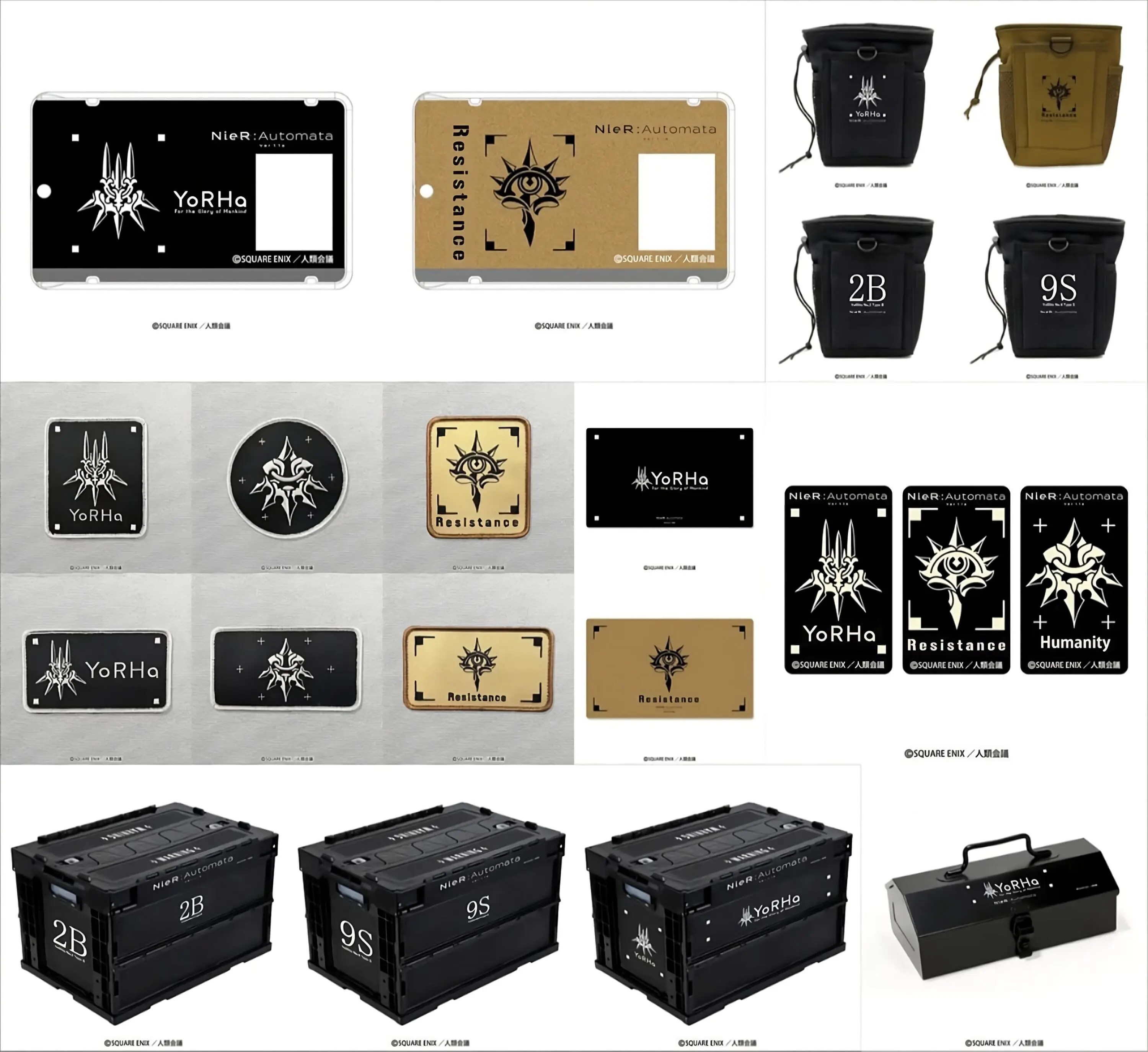 The collection features a variety of household items, emphasizing them as practical while still having a sophisticated design with a nod towards the games. Included among them are Narikiri acrylic pass cases, embroidery patches and multi-functional pouches resembling those used in survival games. There is also a smartphone sticker set bearing distinctive Nier symbolism made with high-spec material that allows it to glow in the dark for up to six hours. Why specifically for smartphones? Groove Garage thinks this could be a great aid for times when you’re searching for your phone in your bag or in a dark room.