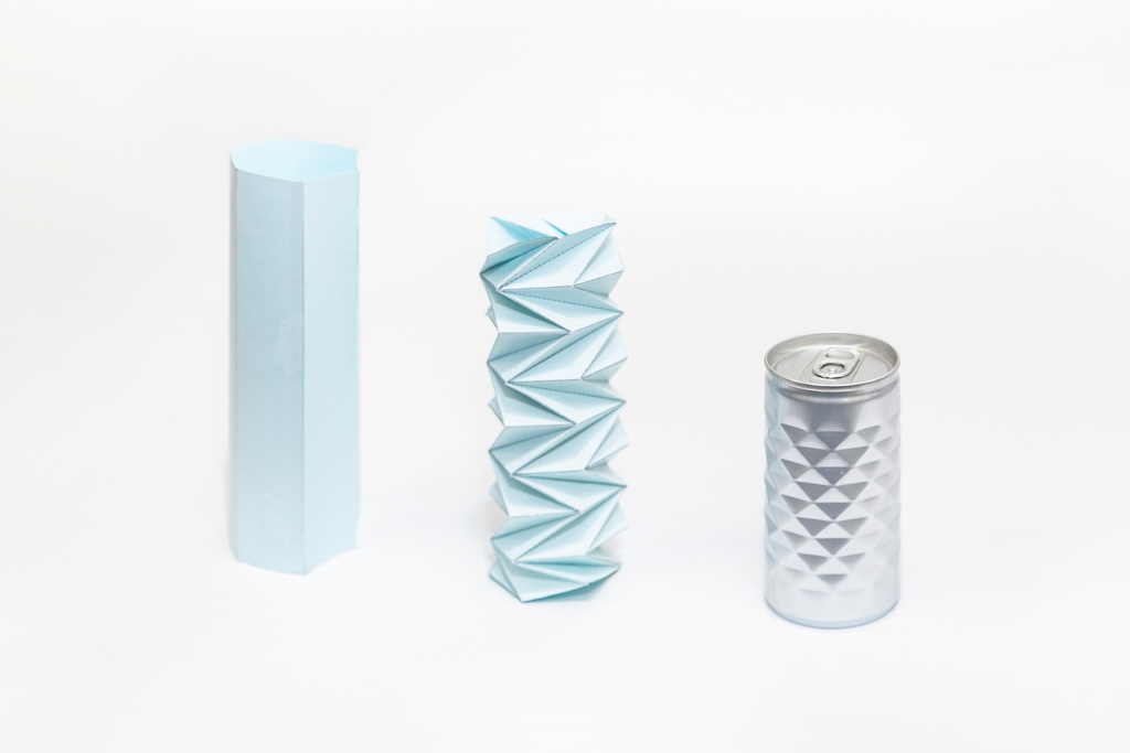Have you noticed that some of the beverage cans you buy these days have a diamond-cut pattern around the middle? That pattern originates in origami and is based on research conducted by astrophysicist and origami engineering pioneer Dr. Koryo Miura. The diamond-cut design results in a stronger can and thus allows for thinner — and lighter — walls.