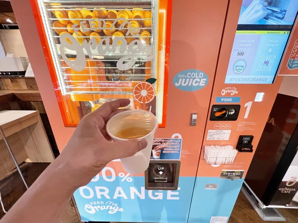 You may have seen these mind-boggling orange-filled vending machines outside large stores like Bic Camera or at train stations. Called “Feed Me Orange,” these vending machines cut, press and squeeze fresh oranges into a cup, offering a quick and healthy pick-me-up for busy city dwellers.