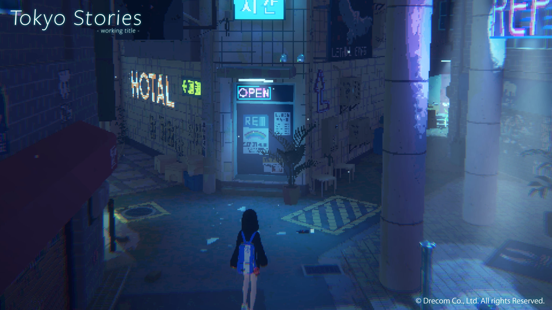 “I had a rough idea of wanting to make a game with a strong storyline, utilizing pixel art. While I was looking at pixel art, I noticed that along with the usual RPG-like high fantasy work, there was also a lot of art depicting modern city themes,” says Yuki Ikeda, the producer of Tokyo Stories at Drecom. “As I’ve gotten older, I’ve also become fascinated by the chaos of Tokyo’s history, from its glittering main streets to the labyrinth of alleys, both of which give rise to a new culture. From there, I realized I could combine the game and the story with a focus on nostalgic pixel art and the back streets.”
