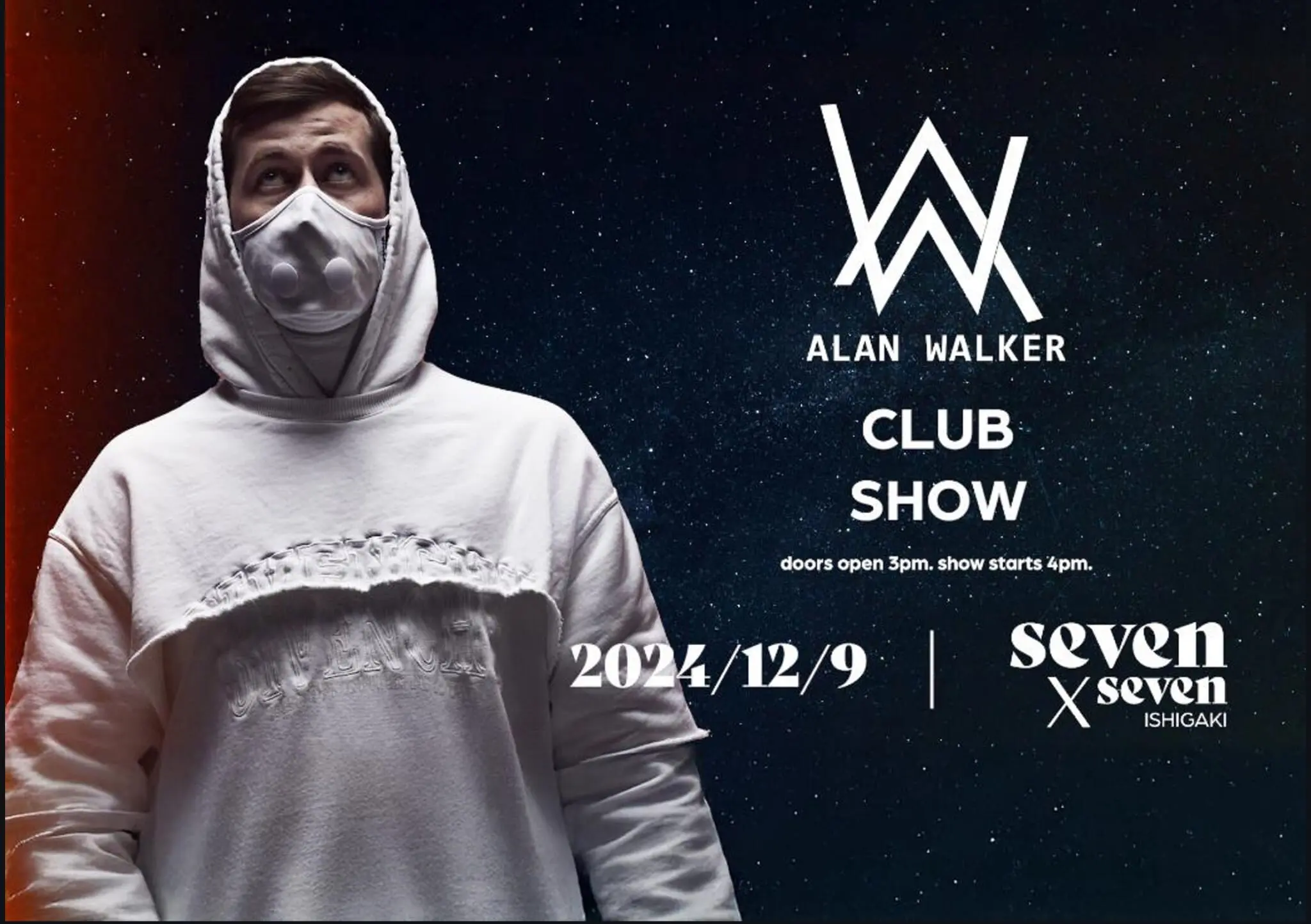 Alan Walker, the world-renowned DJ and music producer, is bringing his electrifying sounds to Japan with two exclusive performances as part of his largest-ever Asia tour, “Walkerworld Asia Tour Pt. II.” Presented by seven x seven and sponsored by Kasumigaseki Capital Co., Ltd.