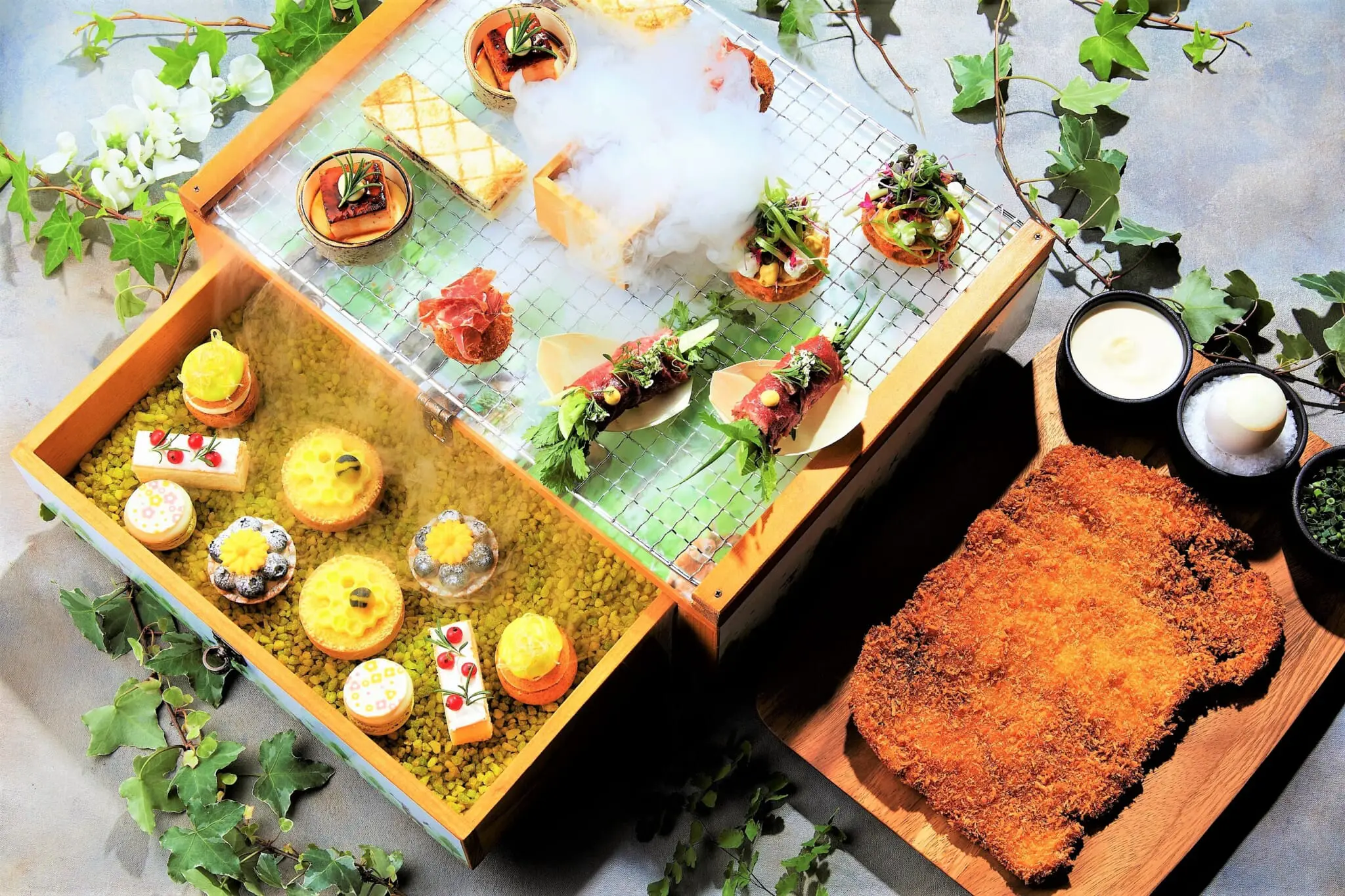 Forest Boost is an afternoon tea-style menu that contains a variety of savory dishes with colorful ingredients. There are specialty meat dishes unique to The Steakhouse and adorable petit gateaux inspired by summer, served in an original wooden box.