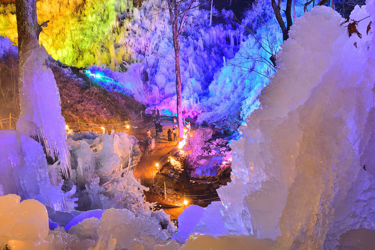 Witness a winter wonderland with Chichibu’s magical Ashigakubo Icicle Illuminations. Stretching for around 200 meters and towering up to 30 meters, the icicles are a gorgeous display of winter beauty, highlighted with magnificent colorful lights.