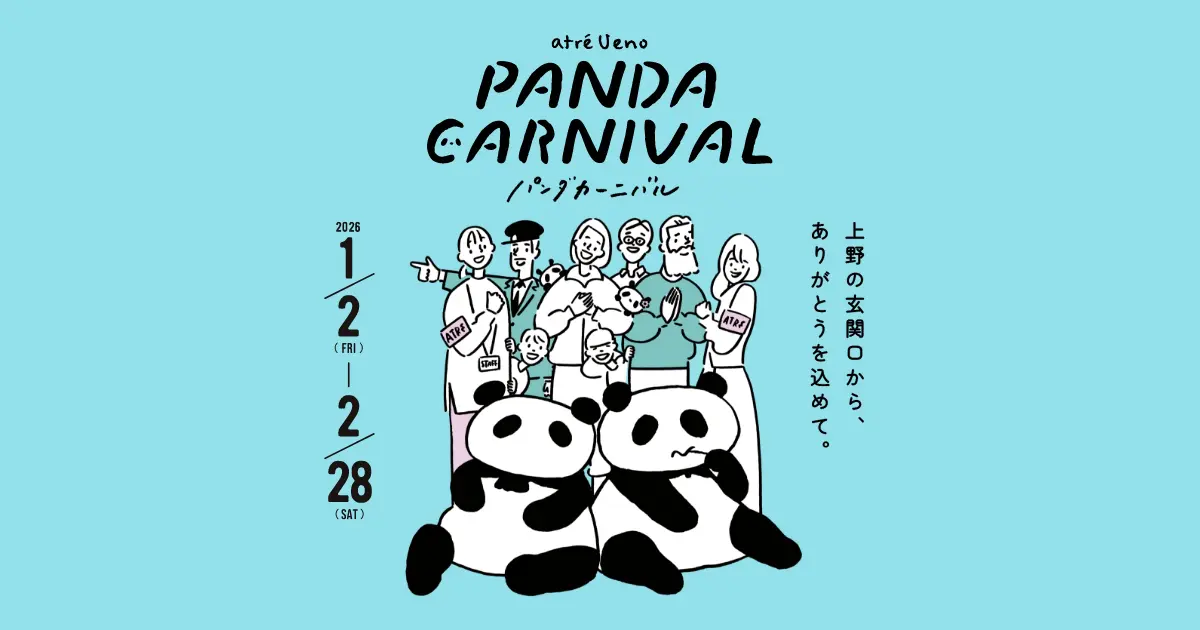 Atre Ueno, Ueno Zoological Gardens and artist Yu Nagaba will be collaborating for the event. The carnival will feature an exhibition, photo booths, panda-themed products and special menu items.
