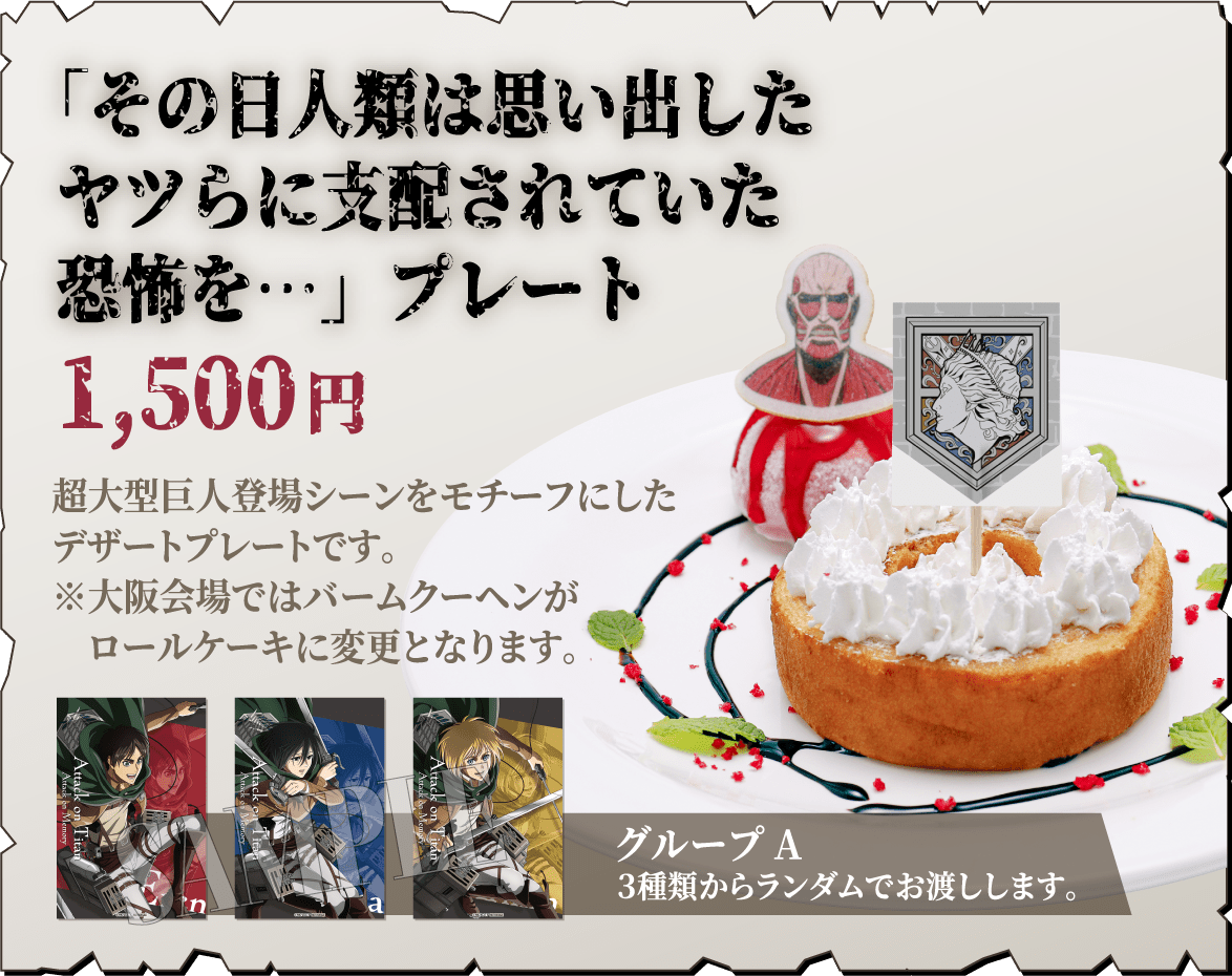Bandai Nambo’s cafe corner will offer special menu items inspired by key moments in Attack on Titan.
