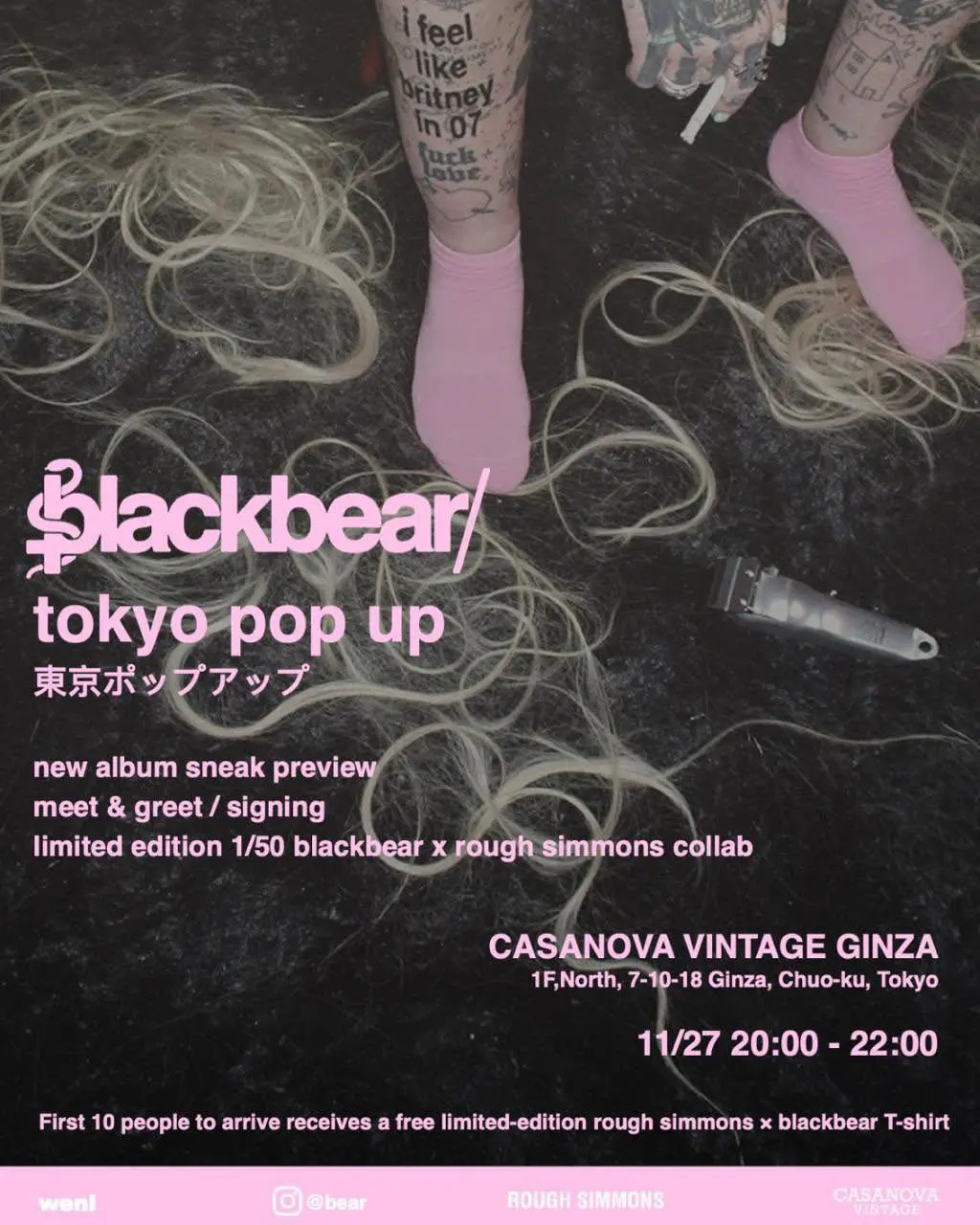 Blackbear is in in Tokyo for an exclusive pop-up event celebrating “Britney in ‘07,” the first single from his first album in over three years. Show up for the official release party at Casanova Vintage Ginza which will feature the debut of his new limited-edition merch collaboration with Rough Simmons, plus a special birthday moment for Bear himself.