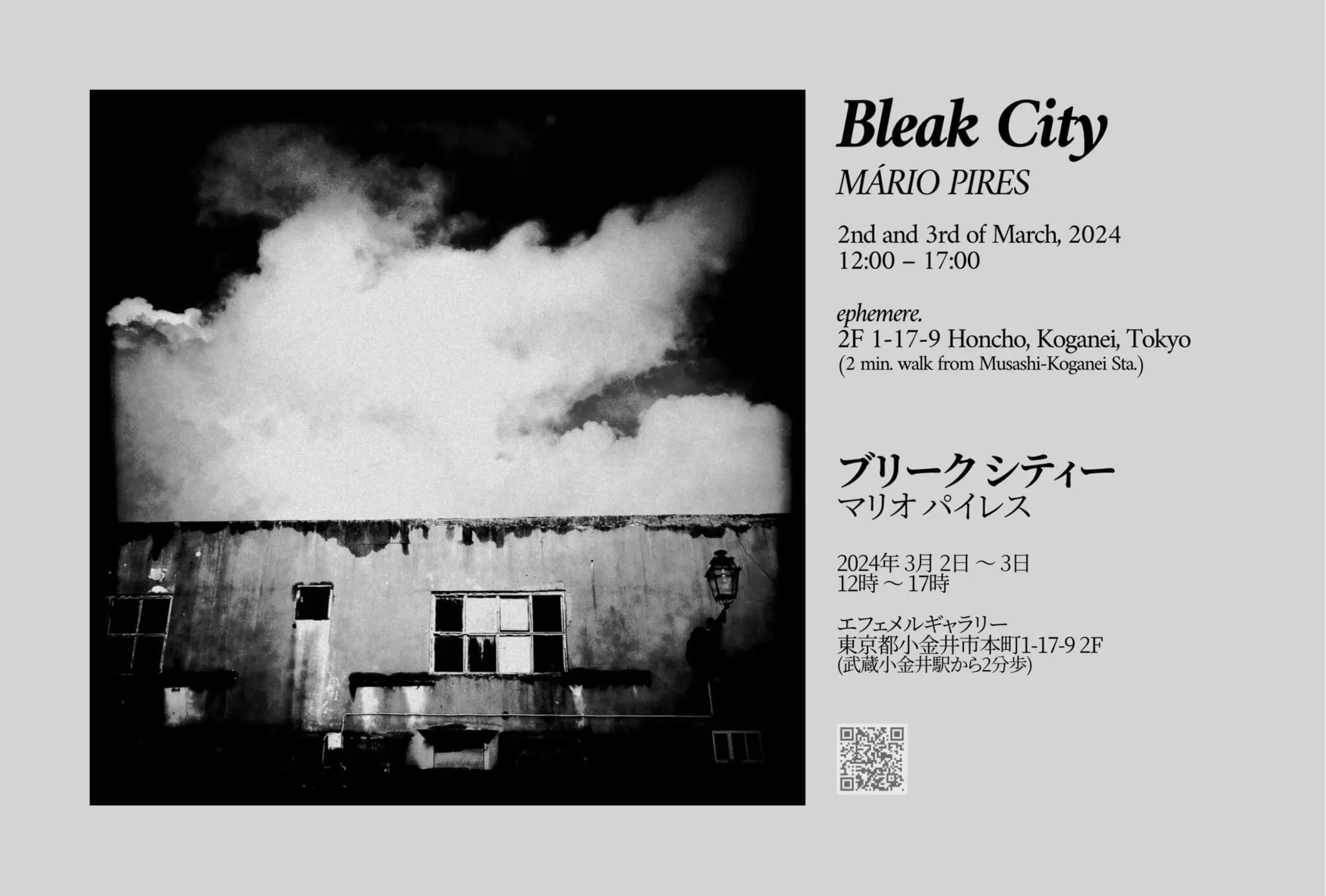 Mário Pires is a photographer from Lisbon, Portugal, who works with both digital and analog, as well as video, calligraphy and music. His exhibition at the Ephemere gallery is curated by Anne Murayama.