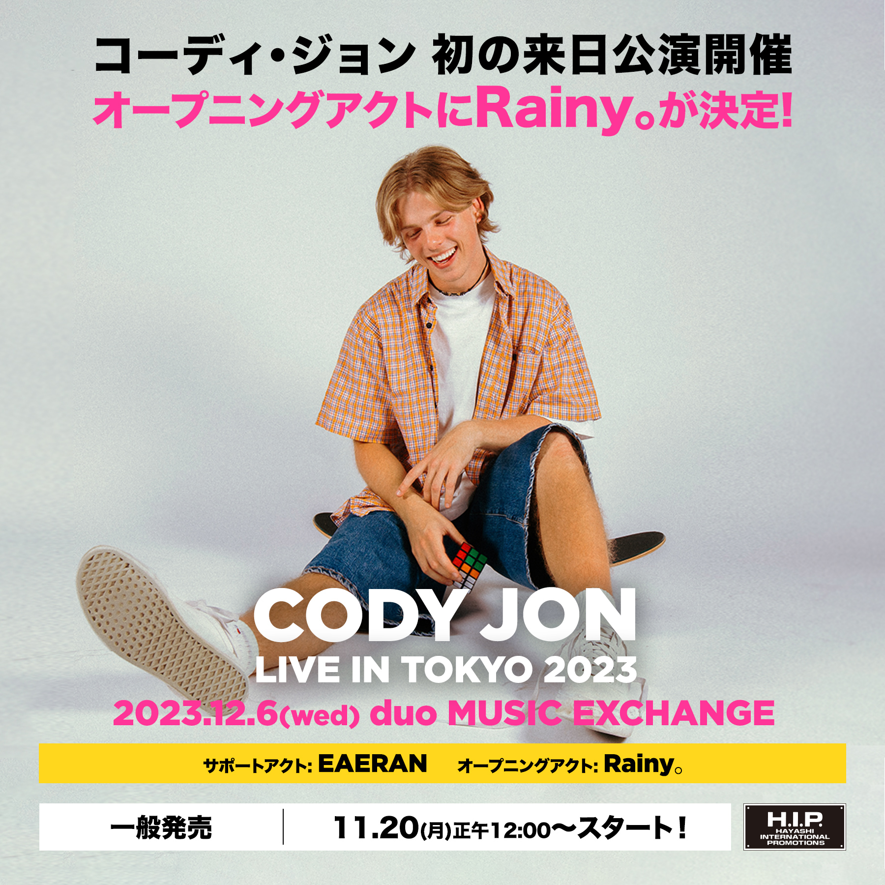 Twenty-one-year-old Australian singer-songwriter Cody Jon is coming to Japan for the first time. High on the back of his collaboration with Japanese R&B singer, Sirup, “2Manytimes,” Jon will touch down at Duo Music Exchange. Support comes from Eaeran and Rainy.
