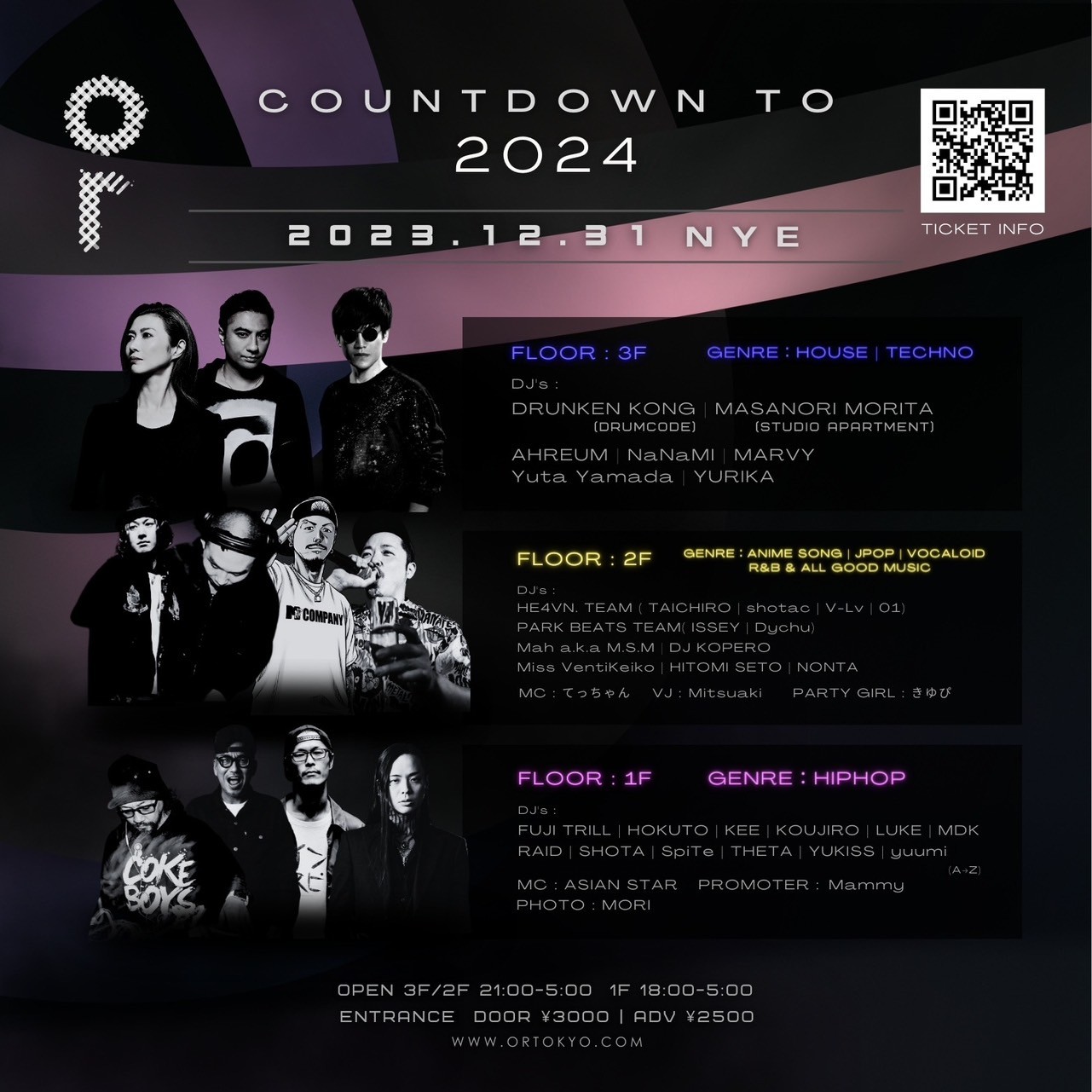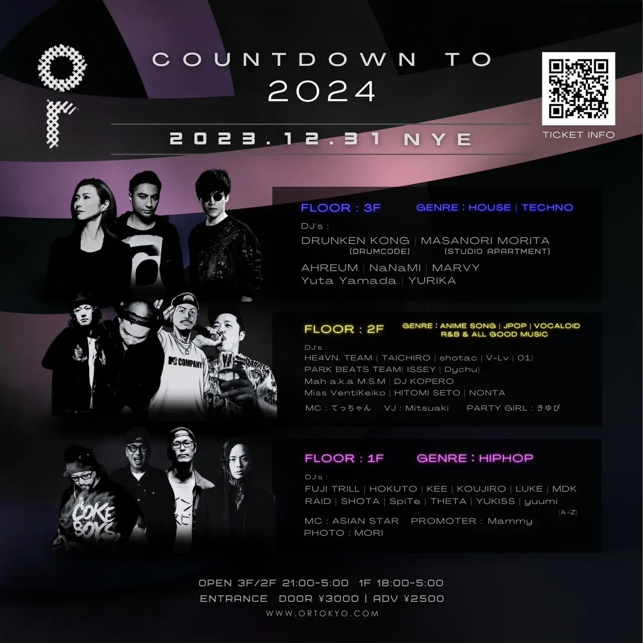The first floor will be a hip-hop haven, with more than 10 DJs. The second floor is a treat for pop culture vultures, dedicated to anime songs and J-pop. The third floor is the techno and house room, with special guests Drunken Kong and Masanori Morita joined by five other DJs. There will be an MC, a VJ and more.